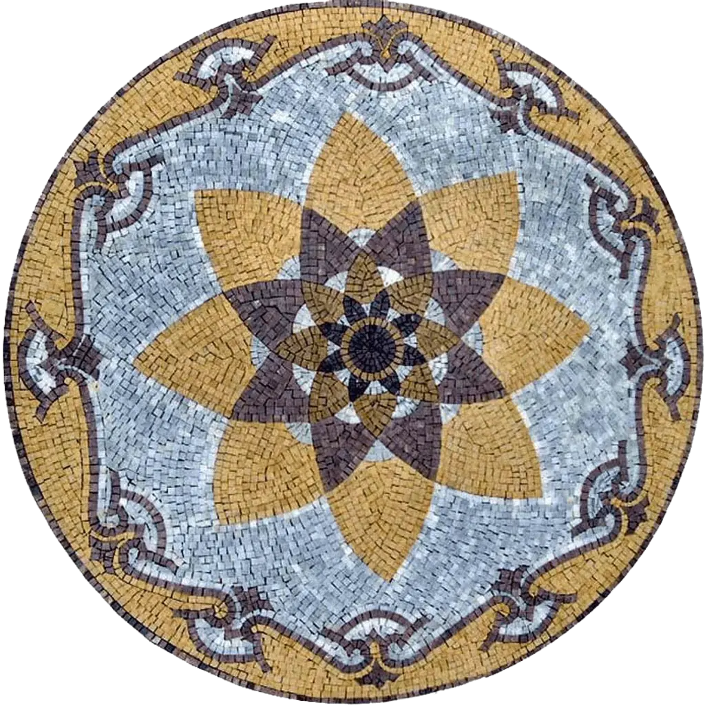 Veda is a fully handcrafted Buddhist mosaic medallion featuring a simple yet elegant lotus pattern rendered in a naturally vibrant and pastel palette. This exquisite artwork, designed for both walls and tabletops, embodies serene spirituality and refined craftsmanship. The mosaic’s premium quality is enhanced by the inclusion of luminous Brown Quartz, whose crystalline, jewel-like shimmer adds a captivating warmth and depth to the design. These scintillating brown quartz tones offer a radiant, translucent brilliance that elevates the natural stone’s luxurious appeal. Each piece is a testament to the meticulous artistry involved, combining silky textures and cool-to-the-touch surfaces that invite close appreciation. Crafted from exotic materials, this mosaic celebrates the harmony of nature and craftsmanship, making it a stunning focal point in any space. Veda’s sophisticated design and use of luxury stone materials ensure that it stands out as a premium quality mosaic artwork, perfect for collectors and connoisseurs seeking unique, handcrafted natural stone décor.