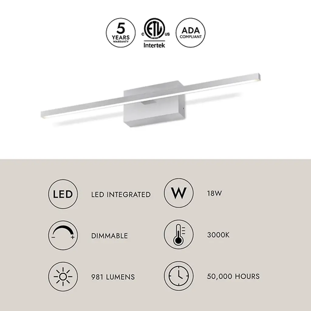 The Vega Minor LED Vanity Light by Kuzco Lighting is a polished and modernly designed piece. A smooth rectangular backplate anchors this fixture, supporting a low-profile and streamlined silhouette. With a square profile linear Aluminum bar, an inset Opal Polymeric diffuser creates a soft, uniform and energy efficient light. Adding a layer of downward facing light from above sinks and vanities, this piece has a sleek and minimal composition to lend surroundings a tailored touch.