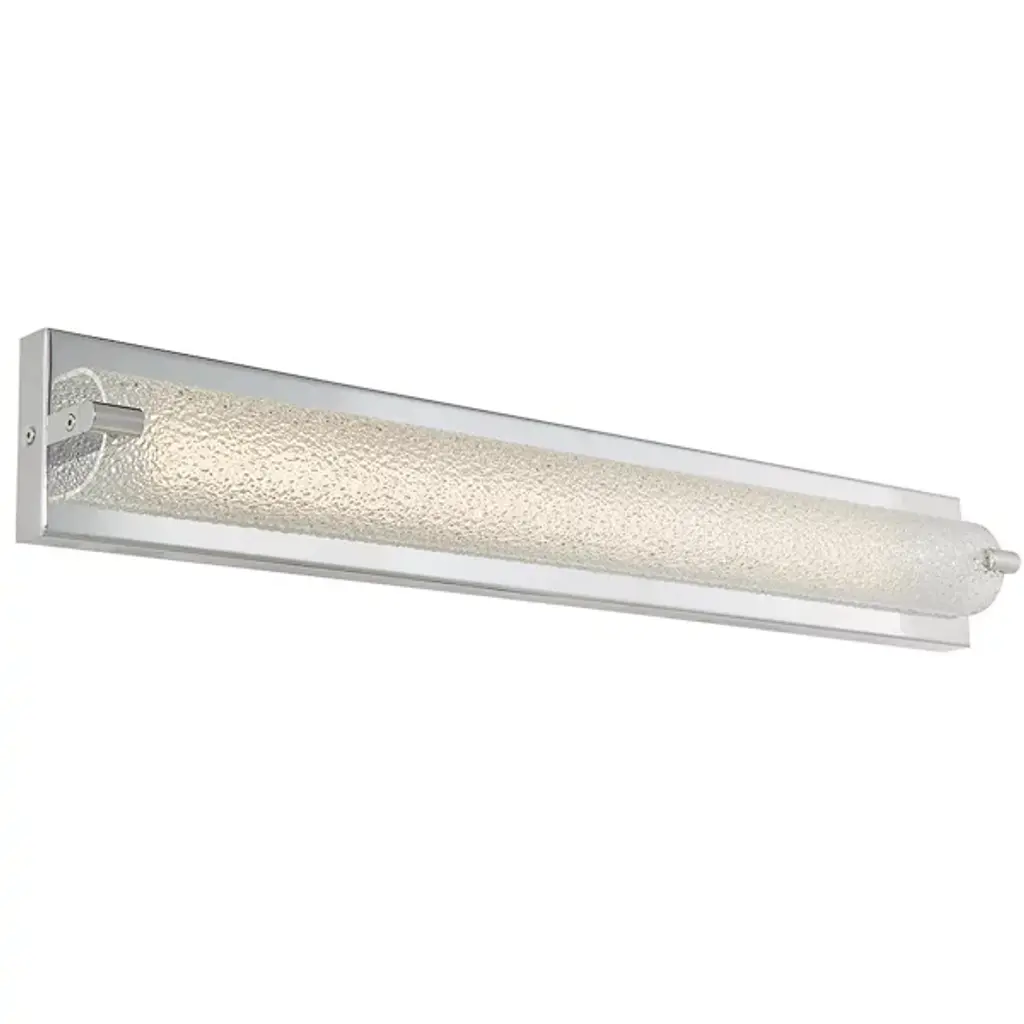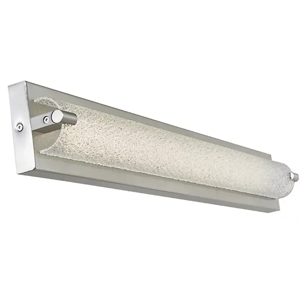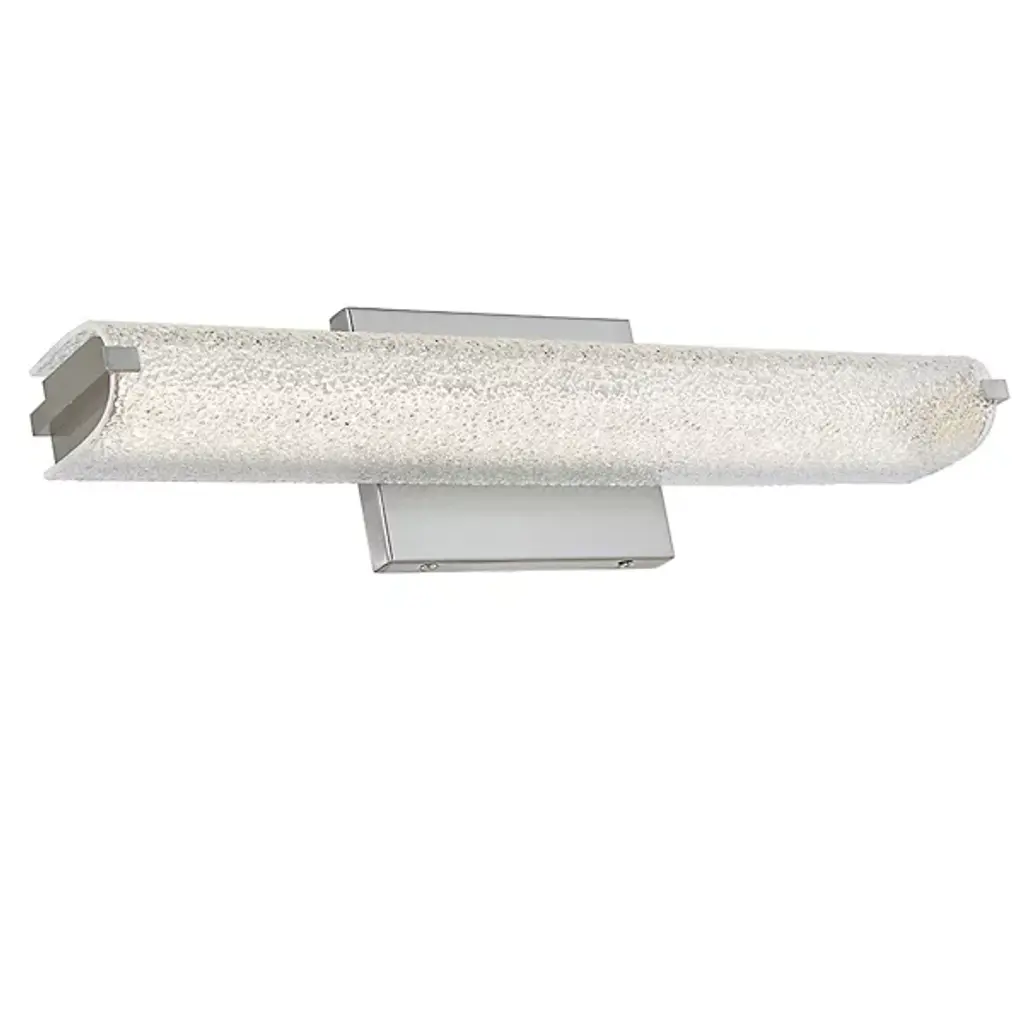 The Veil LED Vanity Light by Abra Lighting takes a simple, streamlined silhouette and adds texture to create a unique lighting solution for bathroom and vanities. An elongated steel rectangle forms the fixture’s frame, with a low-profile design that makes it adaptable to a variety of spaces. An eye-catching, curved diamond glass diffuser is held in place ahead of its integrated LED lamping. Casting a warm and evenly dispersed light, this fixture instantly elevates any ambiance.