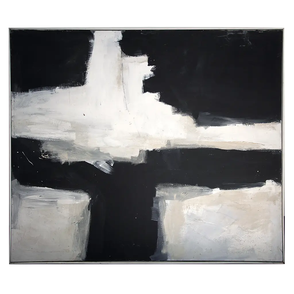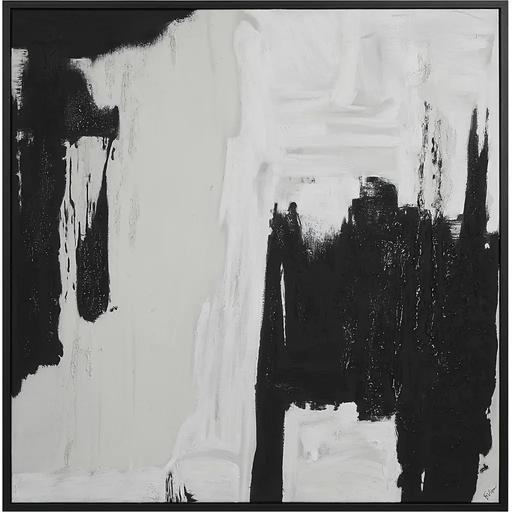 Exclusive to One Kings Lane: This black-and-white abstraction brings a captivating modern note to your wall. Printed on gallery-wrapped canvas and displayed in a black floater frame, this piece arrives ready to hang.
