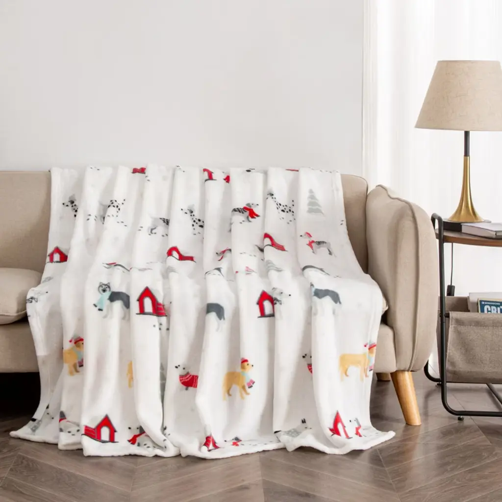 Velvet Plush Fleece Holiday Printed Warm And Cozy Throw Blanket - Great Bay Home (50" X 70" Throw, Pups In The Snow)