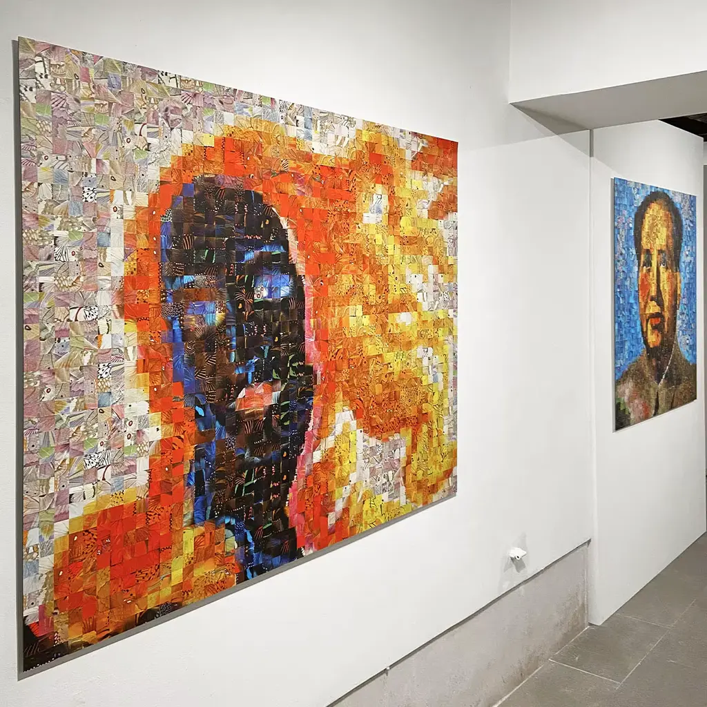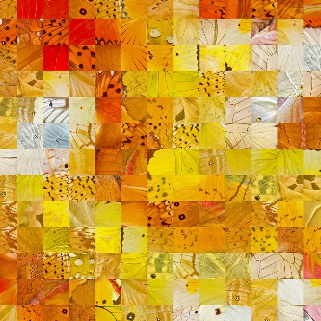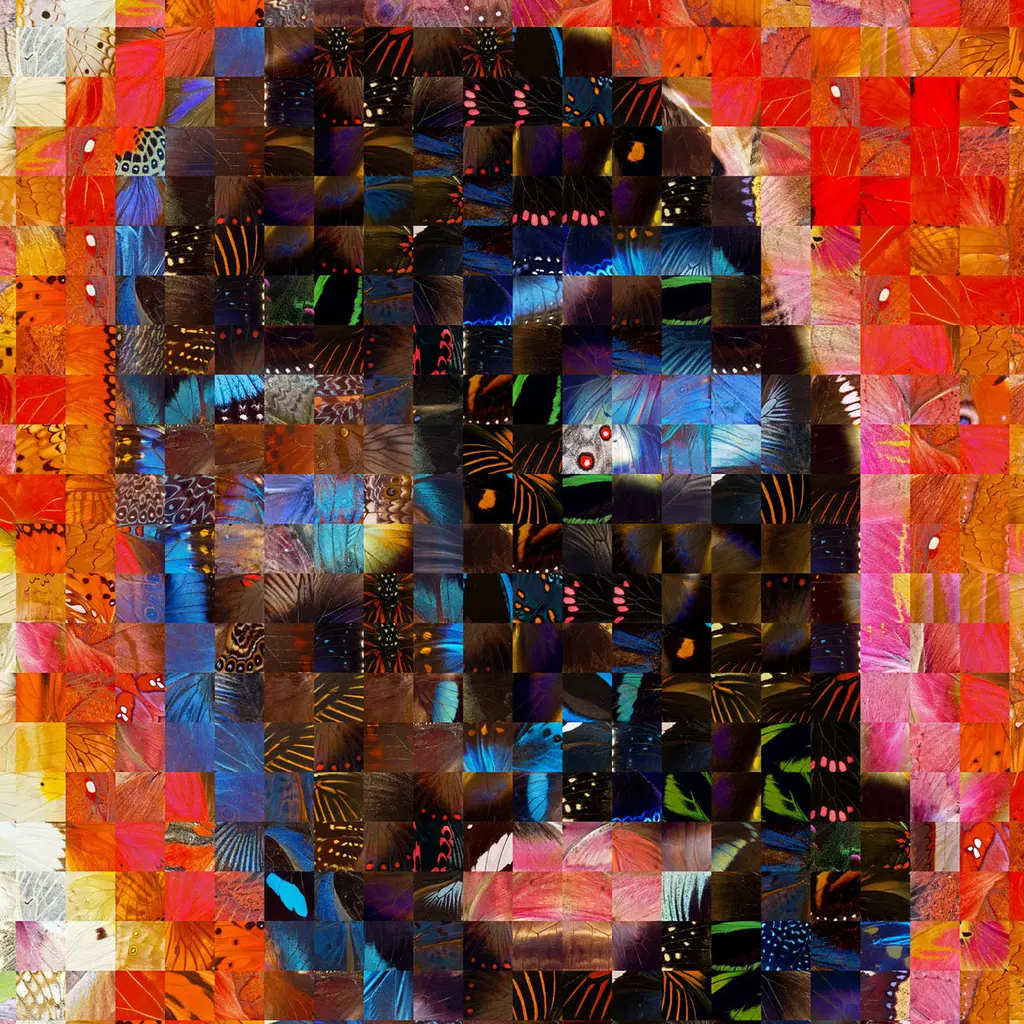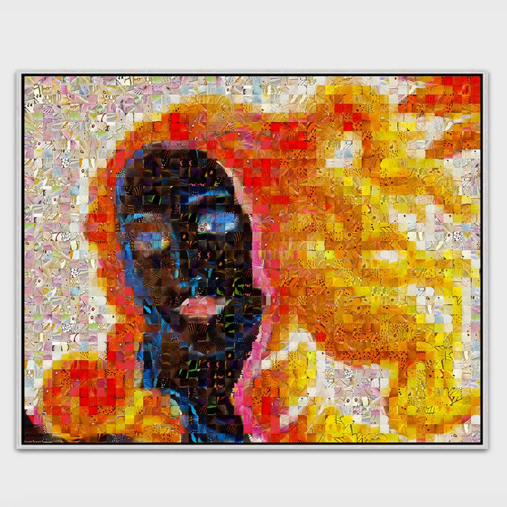 Venere is composed of 2000 photographic tiles of butterflies' wing details that have been used to elaborate this work provided with a double certificate of authenticity and uniqueness countersigned by the artist and blockchain registered. The work can be ordered with a handcrafted wood frame. Revisiting Andy Warhol’s Venere di Botticelli, 2020, metal sublimation print, chromaluxe HD aluminum, 100×125 cm, ed. of 3. Please ask the Concierge service for further information.