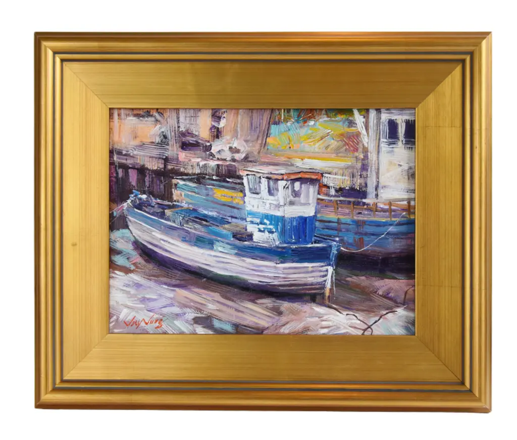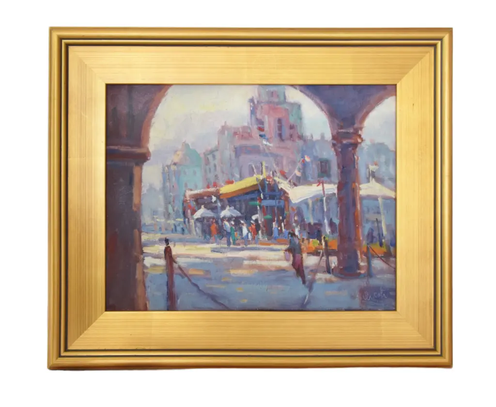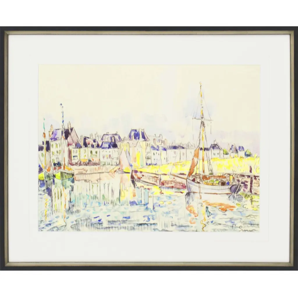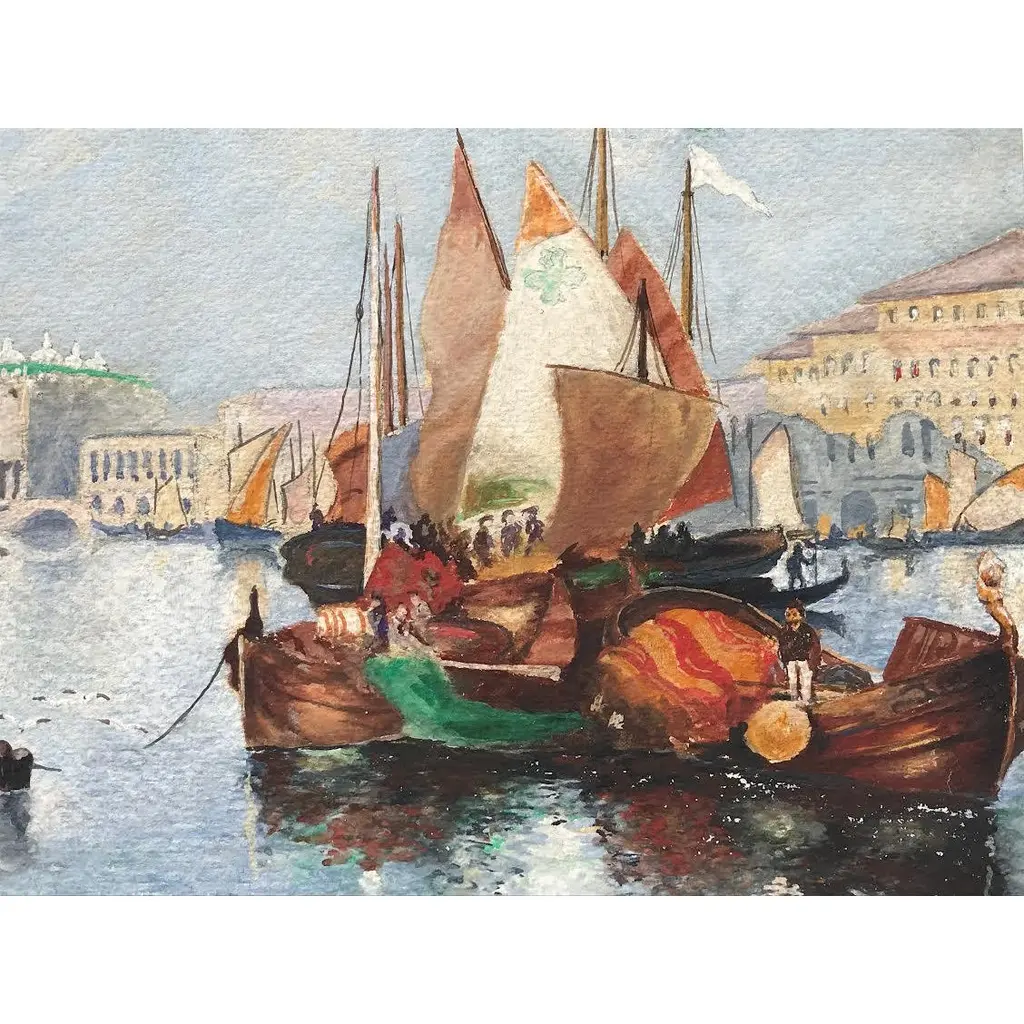 A beautiful original antique watercolor painting of the Venice Grand Canal with gondolas signed lower left Walter M Lenhart and dated 1908. Presented matted and framed in archival materials and contemporary gallery frame.
