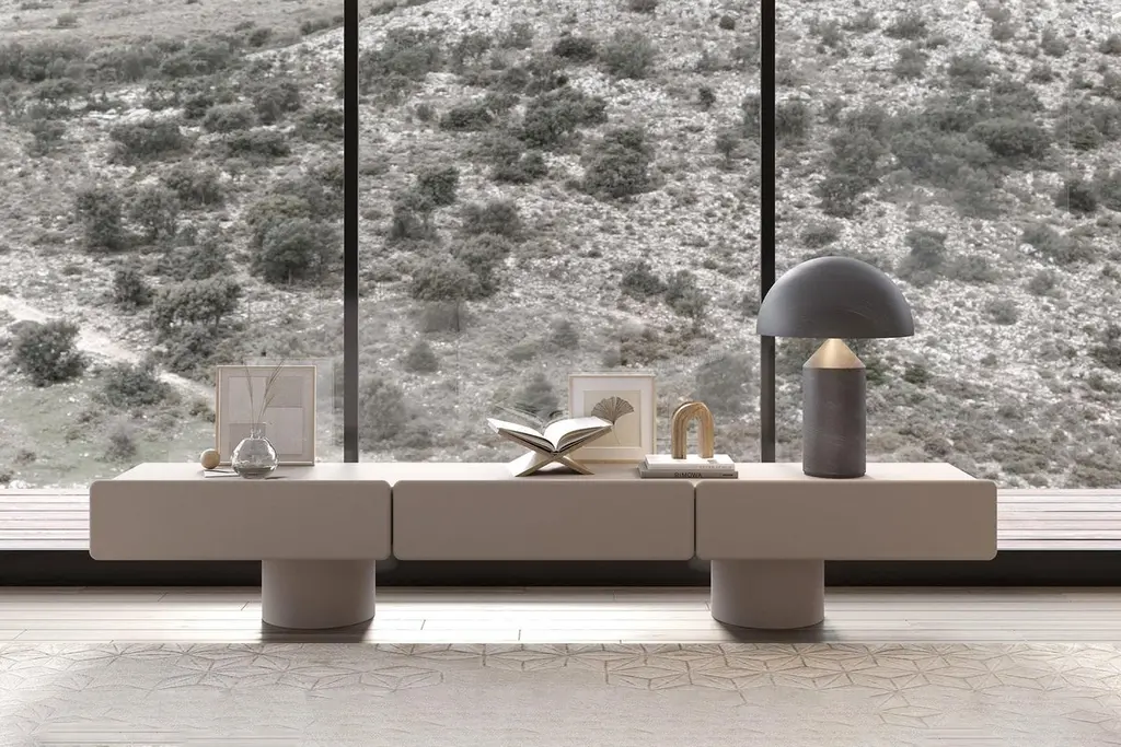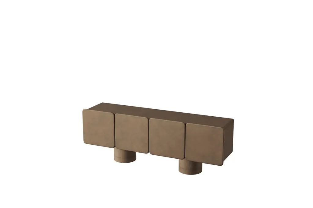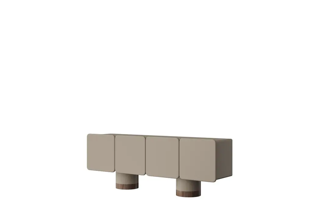Venus, 4 Rounded Doors Sideboard on Two Cylinder Legs in Lacquer by UltramobiliDimensions: W 225 x D 53 x H 83 cmMaterials: Lacquered structure in mat or gloss finish. Cabinet interior with wooden or lacquered drawer and shelves. Cylindrical base made of metal and liquid lacquered. 4 rounded doors sideboard on two cylinder legs in Lacquer finish. Soft closing hinges. Internal drawer and shelves. Finish options: Mat Lacquer structure with Black Walnut or Brushed Brass feet; Vintage Metal Effect handmade painting.Ultramobili:Tactile materials and exclusive finishes, advanced functionality and uncompromising quality define the character and soul of each creation, the best business card with which ULTRAMOBILI furnishings present themselves to the world. ULTRAMOBILI collaborates with a group of highly selected craftsmen, closely connected to their home territory, Pesaro. It is from their manufacturing skills that all the brand's furnishings take shape, in a continuous exchange of skills that focuses on design ability and the intelligence of the hands. ULTRAMOBILI employs an international team of designers who every day imagine, design and create - with talent and passion, dedication and visionary spirit - all the brand's furniture: architectural sculptures that become iconic objects and furnishings for living. ULTRAMOBILI's credo is quality without compromise. An uncompromising vision that expresses itself every day in the choice of excellent materials and finishes, in the obsessive care for every single detail, in the constant search for advanced functionality and in the incessant striving for cutting-edge, unique and unmistakable design. ULTRAMOBILI also produces tailor-made projects, ad hoc creations capable of meeting the most intimate and profound needs of those who enter the brand's universe. Bespoke furnishings that are born in close connection with the architectural envelope that houses them, and that dialogue with the surrounding environment in the volumetric relationships of their components, in the materiality and colour nuances of the materials, in the chiaroscuro effects of the volumes and in the visual communicativeness that distinguishes them.