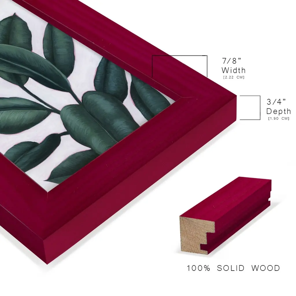 Verdant Ficus I -EZ SWITCH Framed Print w/glass-Cherry Red A delightful, framed print. Featuring a solid wood frame with real wood glass. This premium print is giclee quality. In addition, every frame features a removable back and table top stand. This allows you to change your art in the future or to just stand the art on a table for a new look. We are sure you'll enjoy our new series of EZ SWITCH Framed Art. Solid Wood Frame Real Glass Removable / Replaceable Art Built in Tabletop Stand Sizes range from 4x6 up to 12x15 - buy just one or pair them up as sets as you see fit.