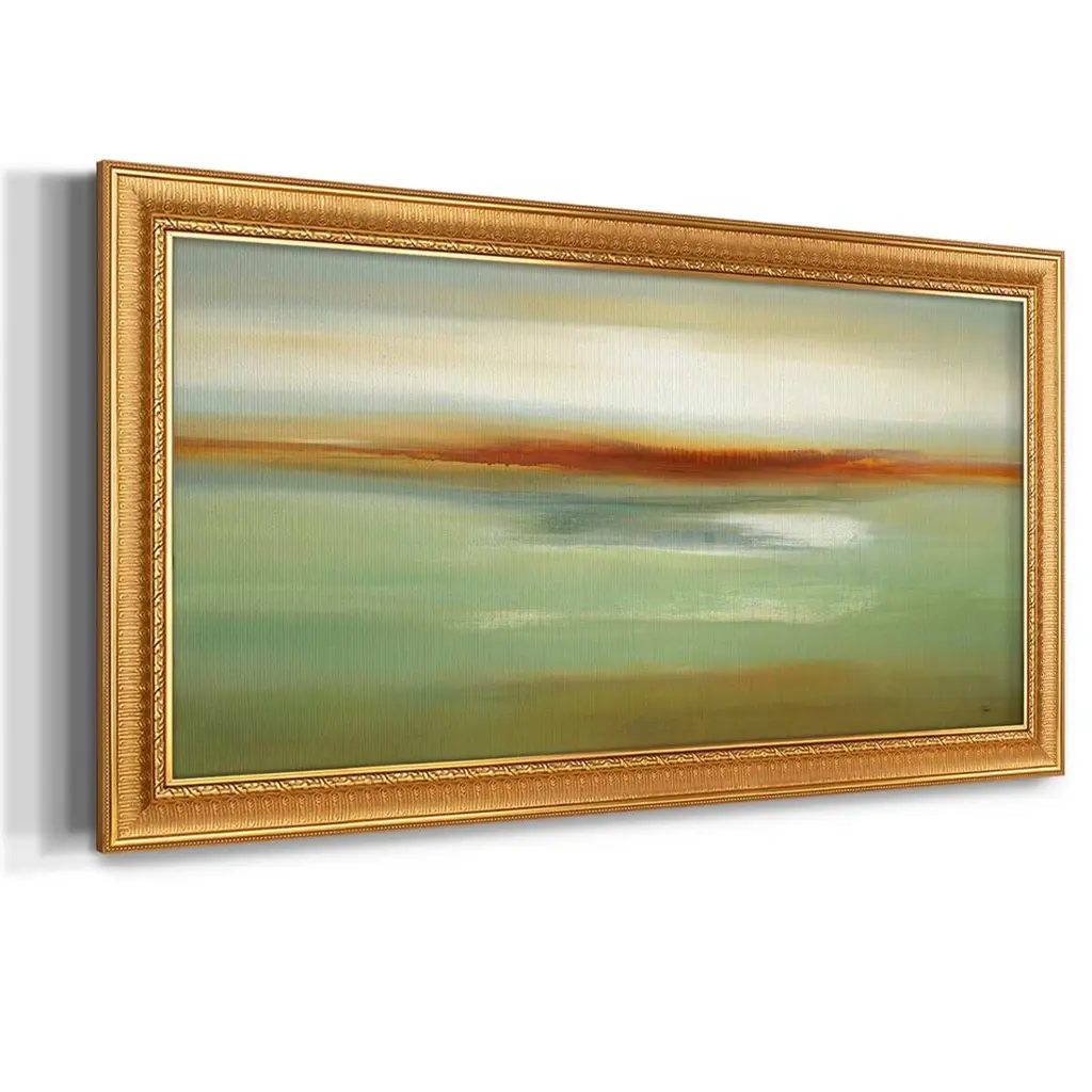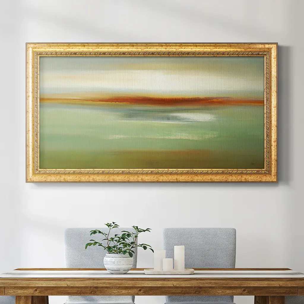 Verde Vision Premium Framed Canvas- Ready to Hang A Premium Framed Canvas created to last. Framed in distressed wood and available in an array of sizes and colors Featuring a beveled a solid wood stretcher bar, each piece comes ready to hand 3 SIZES AVAILABLE 21''X37'' - Overall Size 25''X45'' - Overall Size 29''x53'' - Overall Size Each piece is made to order. Each piece comes with hanging hardware. Made in the USA Ready to Hang Giclee Paper Print Acrylic Glass Beveled Matt Board