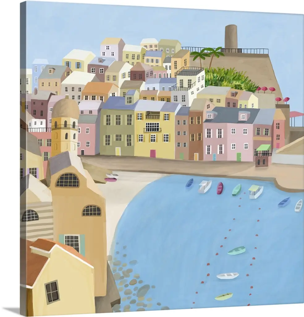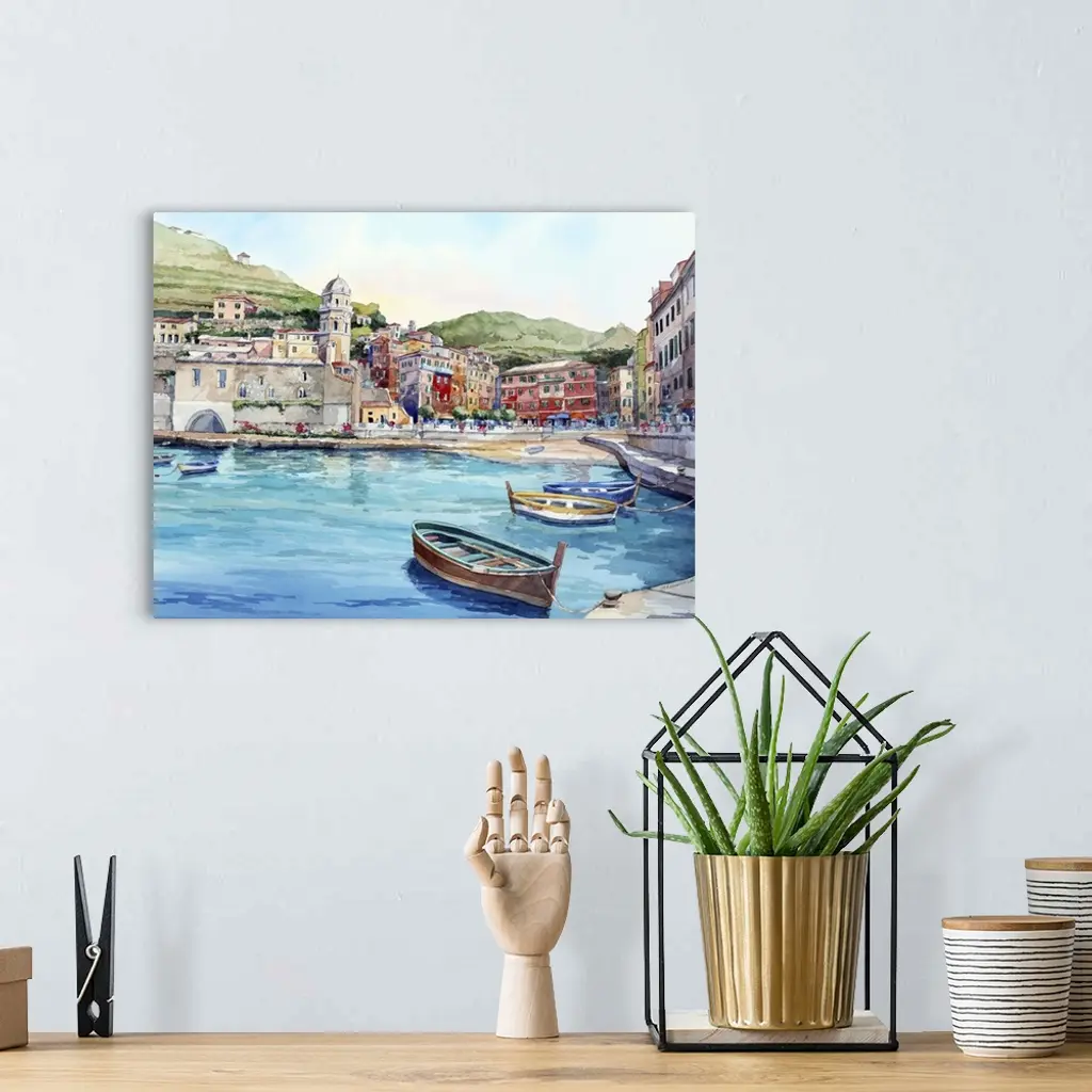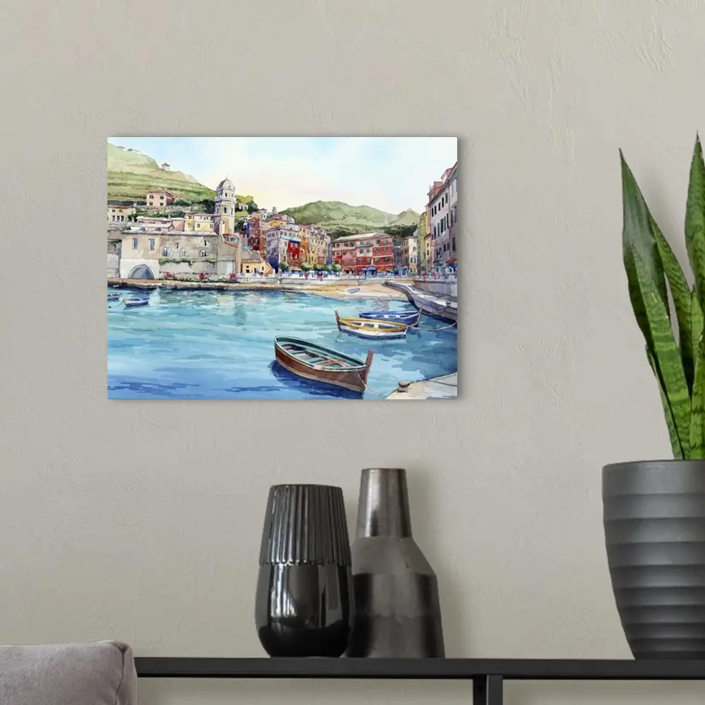 Landscape watercolor painting of Vernazza, Cinque Terre, Italy