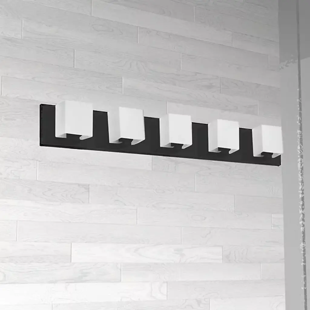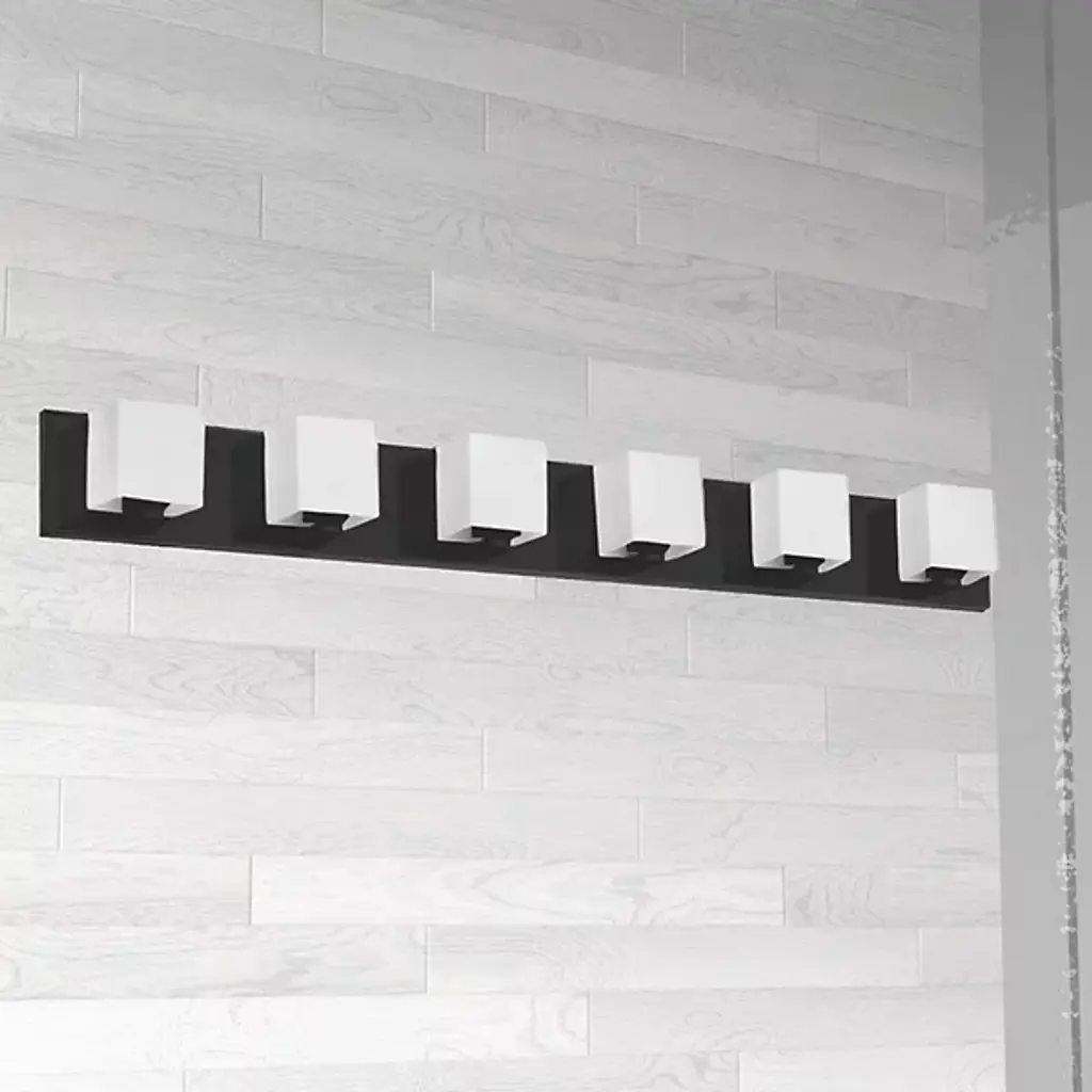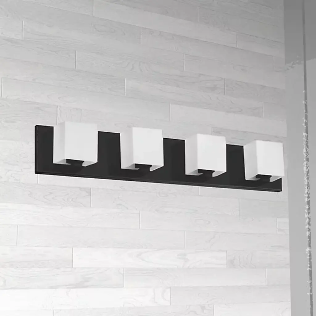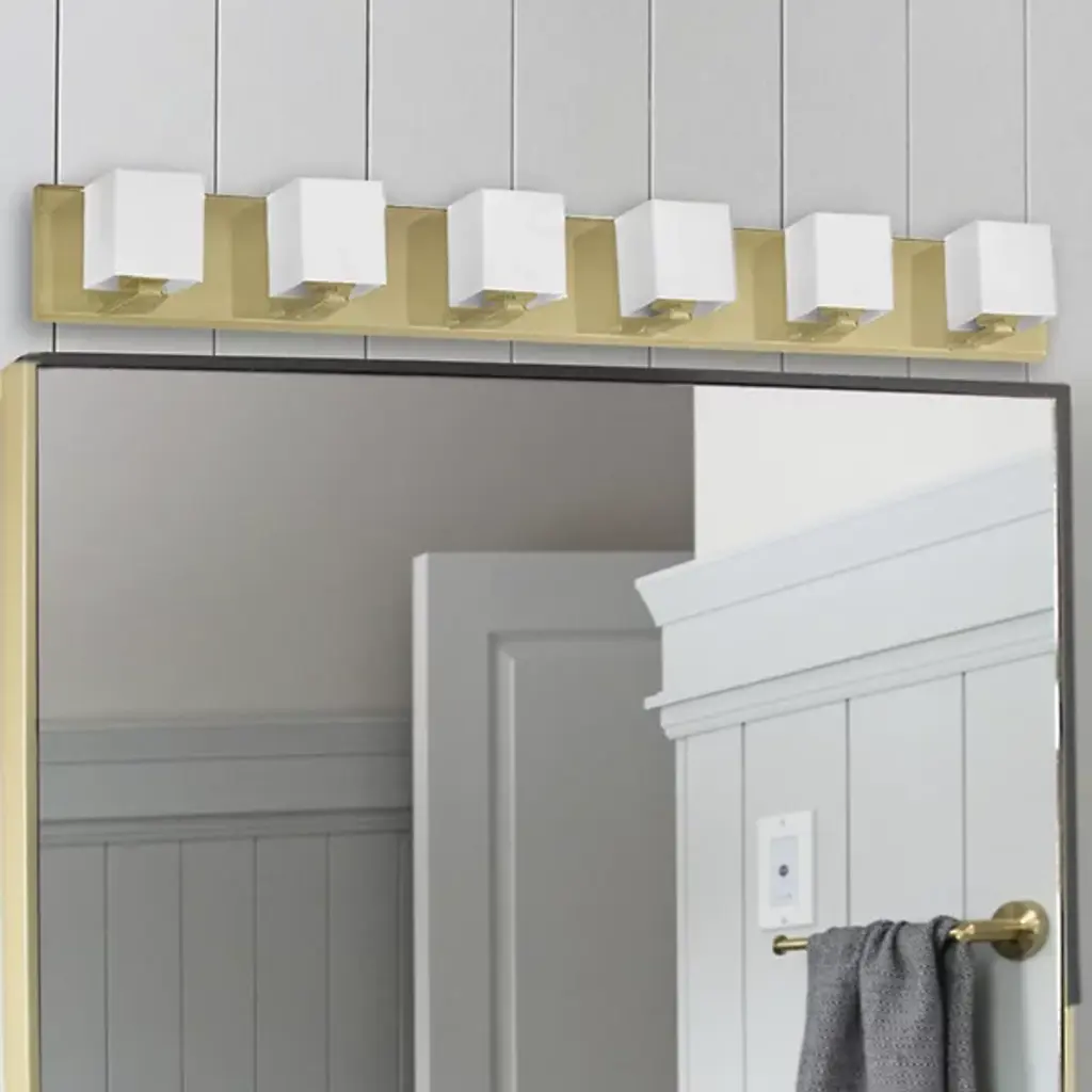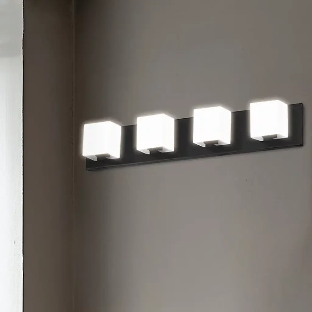 Bring light and sophisticated transitional design to your home with the Verona Vanity V1230 Vanity Light by Dainolite. Held in place by a rectangular backplate made of smooth metal, its light is contained within a series of cube-shaped frosted glass shades, with slender metal arms extending forward to support them. Incandescent light is diffused through the glass to provide ample ambient light ideal in any application perfect for illuminating a modern bathroom.