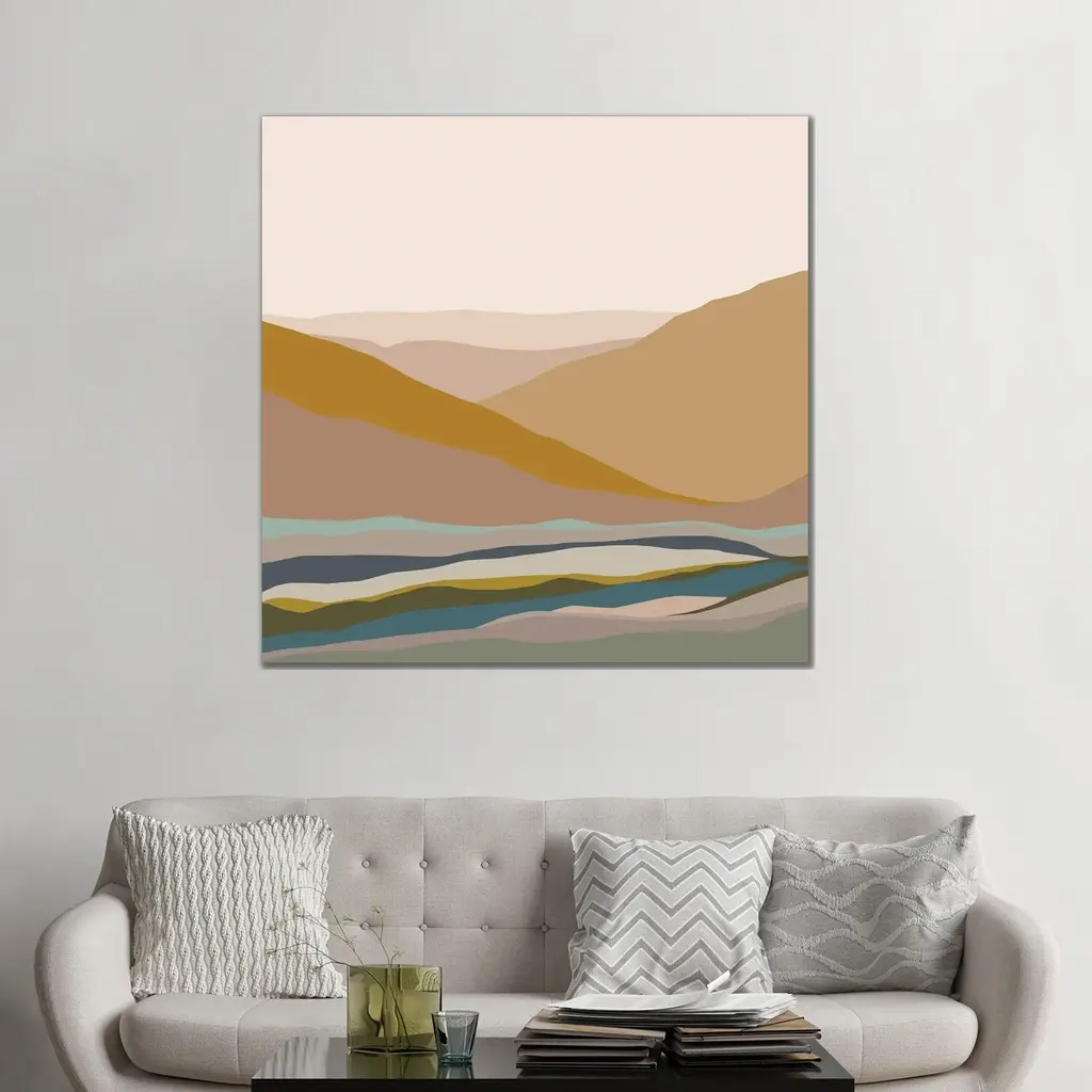 Warmscape I by Veronique Charron is a high quality piece of canvas artwork. The finished size of this piece is 30" X 20", and it has a depth 1.5" with khaki painted sides. There is a UV protective coating over the entire image, and it is ready to hang on your wall with no hardware required. 100% Satisfaction Guaranteed.