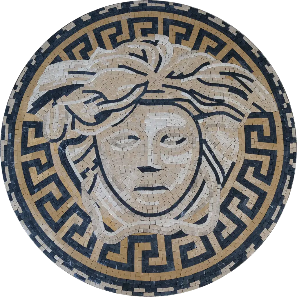 Elevate your interiors with the exquisite Versace Logo Mosaic Artwork, a stunning representation of iconic luxury that is sure to transform any space. This masterpiece is meticulously handcrafted using premium marble tiles, each hand-cut to ensure the utmost quality and precision. The Versace Logo Mosaic Artwork is more than just a decorative piece; it is a statement of style that embodies the opulence and elegance associated with the Versace brand.Perfectly suited for walk-in closets, upscale boutiques, and clothing stores, this artwork adds a touch of sophistication to any environment. The intricate design showcases the renowned Versace logo, capturing the essence of high fashion and craftsmanship. Whether you’re looking to create an eye-catching focal point or a luxurious backdrop, this mosaic artwork will not disappoint.Crafted with attention to detail, the Versace Logo Mosaic Artwork reflects the vibrant colors and bold patterns that the brand is famous for, making it a must-have for any fashion enthusiast or design aficionado. With its unique blend of artistry and luxury, this piece is ideal for those who appreciate the finer things in life.Elevate your décor and indulge in the lavishness of the Versace Logo Mosaic Artwork today. It's not just an addition to your space; it's an experience of luxury that will inspire and impress all who encounter it. Transform your surroundings and let the elegance of Versace shine through your choice of artwork. Invest in sophistication, invest in style, invest in the Versace Logo Mosaic Artwork – your ultimate expression of luxury.