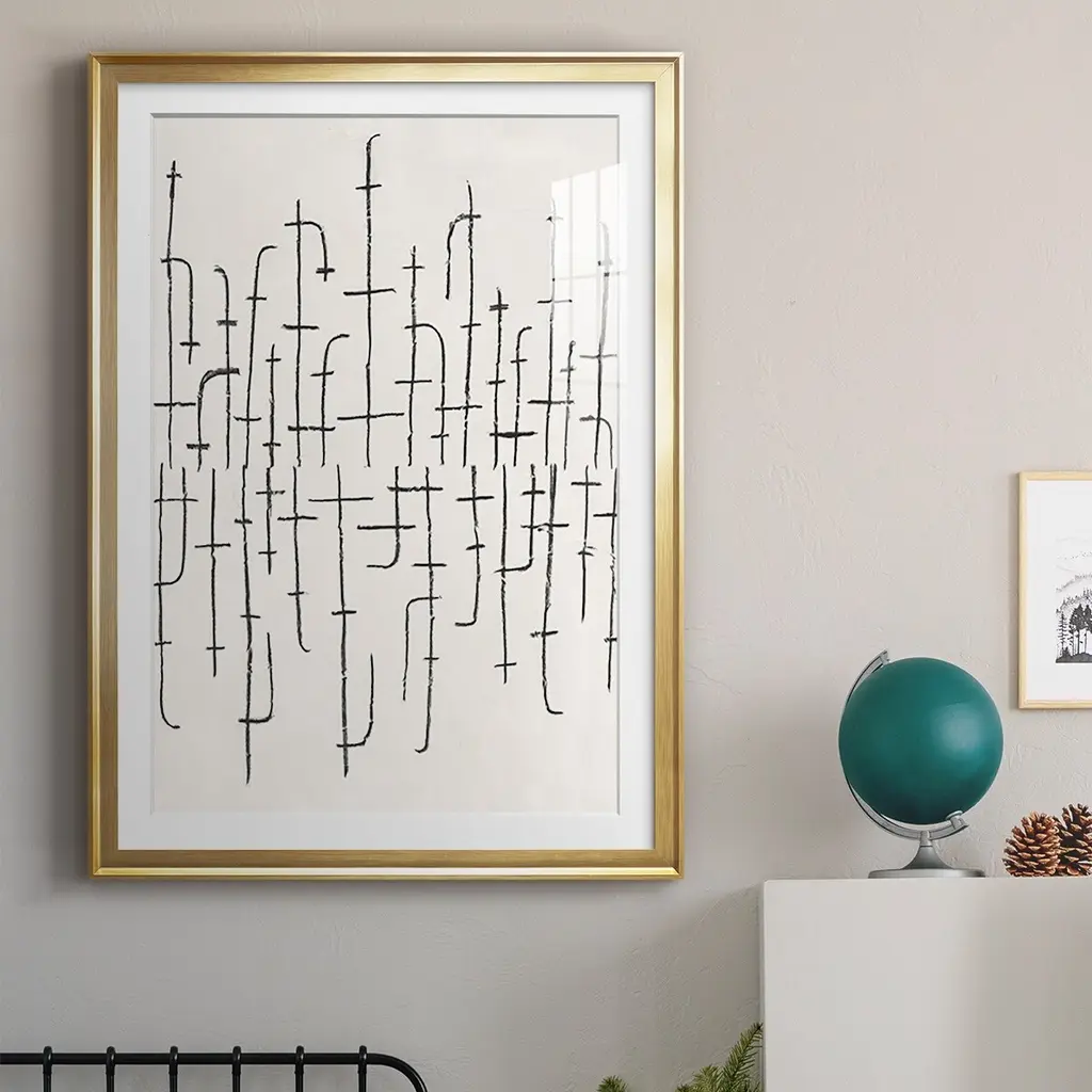 Vertical Arrangement II Premium Framed Print - Ready to Hang A Premium Framed Print created to last. Framed in distressed wood and available in an array of sizes and colors Featuring a beveled a solid wood stretcher bar, each piece comes ready to hand 4 SIZES AVAILABLE 30.5''X42.5'' - Overall Size 26.5'X36.5'' - Overall Size 22.5''x30.5'' - Overall Size 18.5''x24.5'' - Overall Size Each piece is made to order. Each piece comes with hanging hardware. Made in the USA Ready to Hang Giclee Paper Print Acrylic Glass Beveled Matt Board