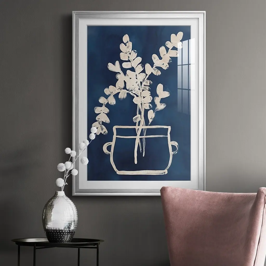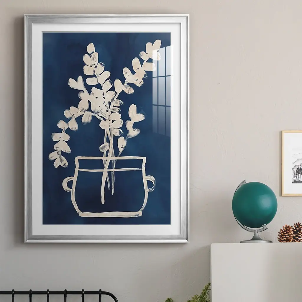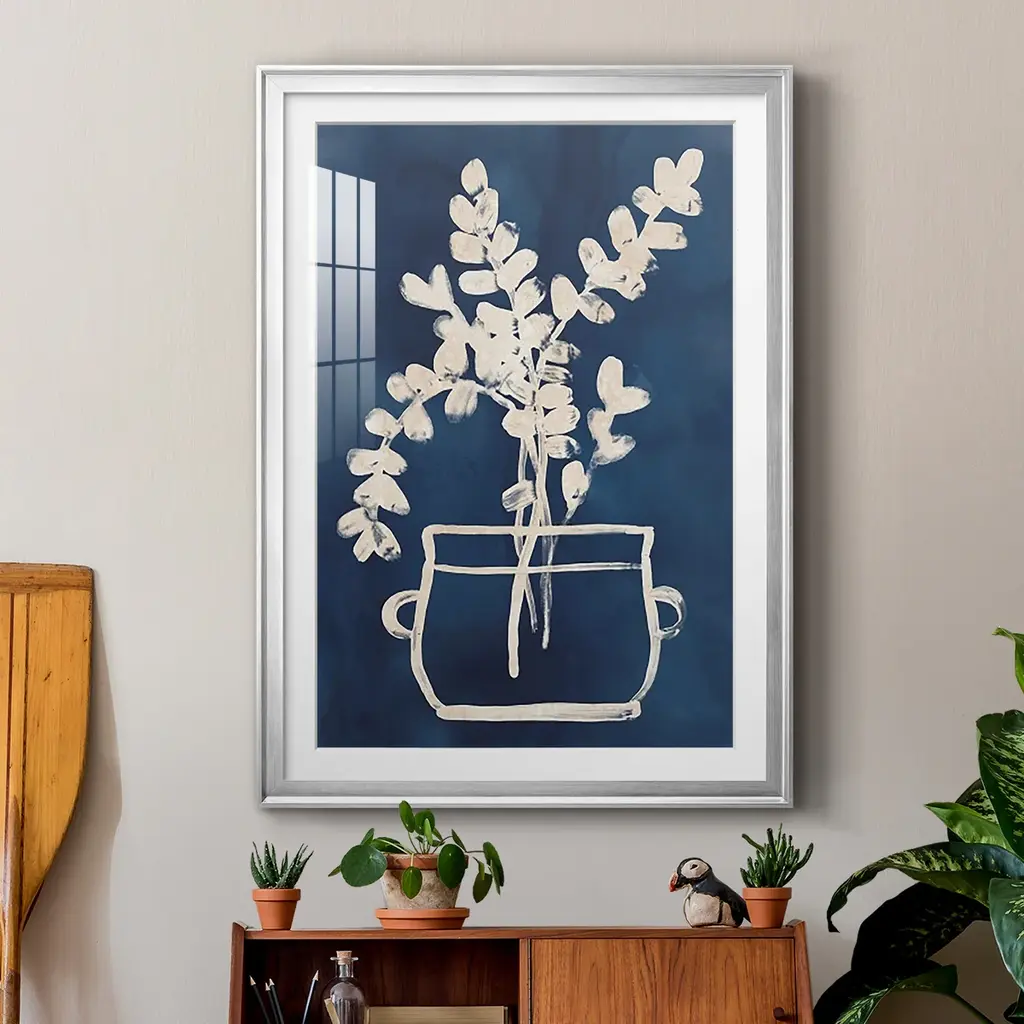 Vessel on Indigo I Premium Framed Print - Ready to Hang A Premium Framed Print created to last. Framed in distressed wood and available in an array of sizes and colors Featuring a beveled a solid wood stretcher bar, each piece comes ready to hand 4 SIZES AVAILABLE 30.5''X42.5'' - Overall Size 26.5'X36.5'' - Overall Size 22.5''x30.5'' - Overall Size 18.5''x24.5'' - Overall Size Each piece is made to order. Each piece comes with hanging hardware. Made in the USA Ready to Hang Giclee Paper Print Acrylic Glass Beveled Matt Board
