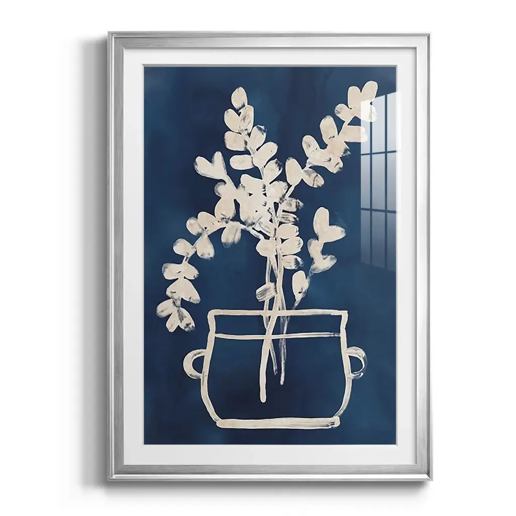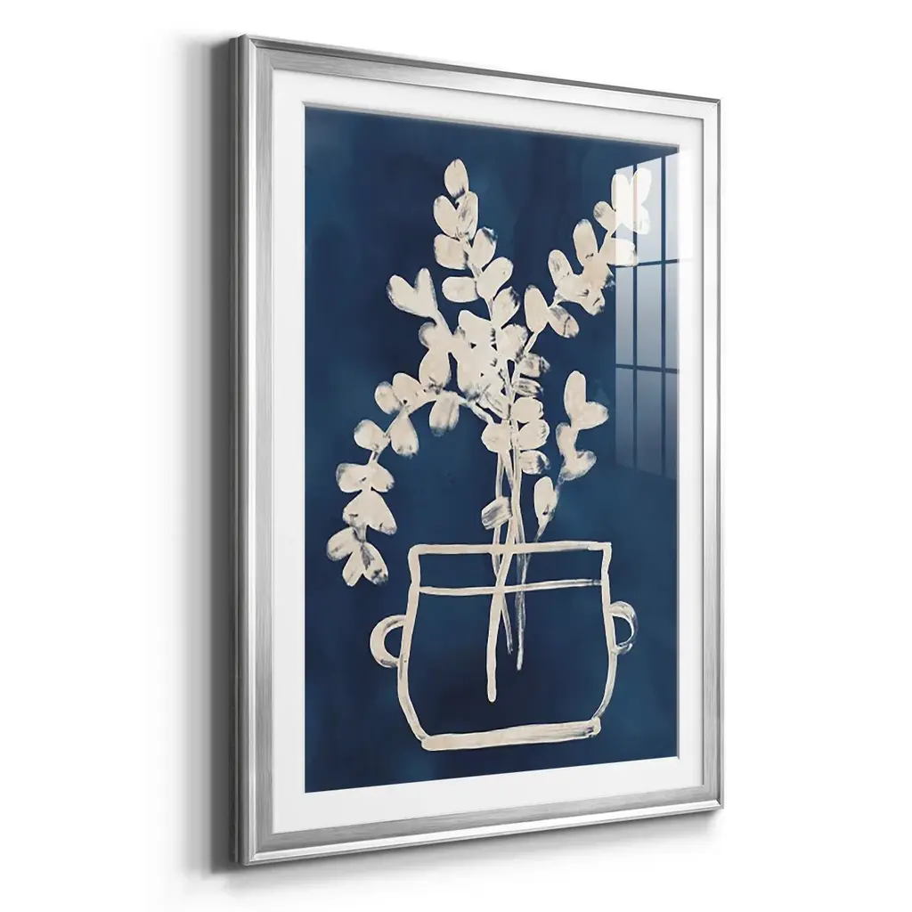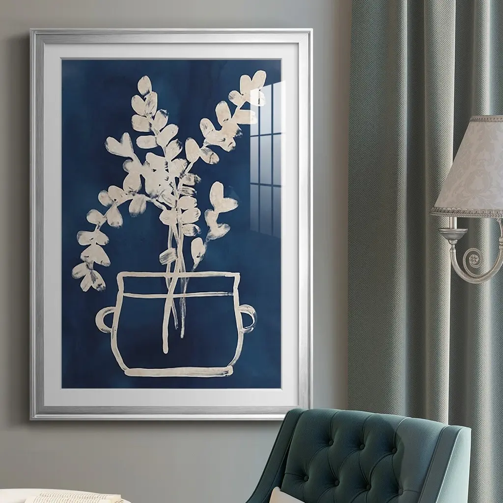 Vessel on Indigo I Premium Framed Print - Ready to Hang A Premium Framed Print created to last. Framed in distressed wood and available in an array of sizes and colors Featuring a beveled a solid wood stretcher bar, each piece comes ready to hand 4 SIZES AVAILABLE 30.5''X42.5'' - Overall Size 26.5'X36.5'' - Overall Size 22.5''x30.5'' - Overall Size 18.5''x24.5'' - Overall Size Each piece is made to order. Each piece comes with hanging hardware. Made in the USA Ready to Hang Giclee Paper Print Acrylic Glass Beveled Matt Board