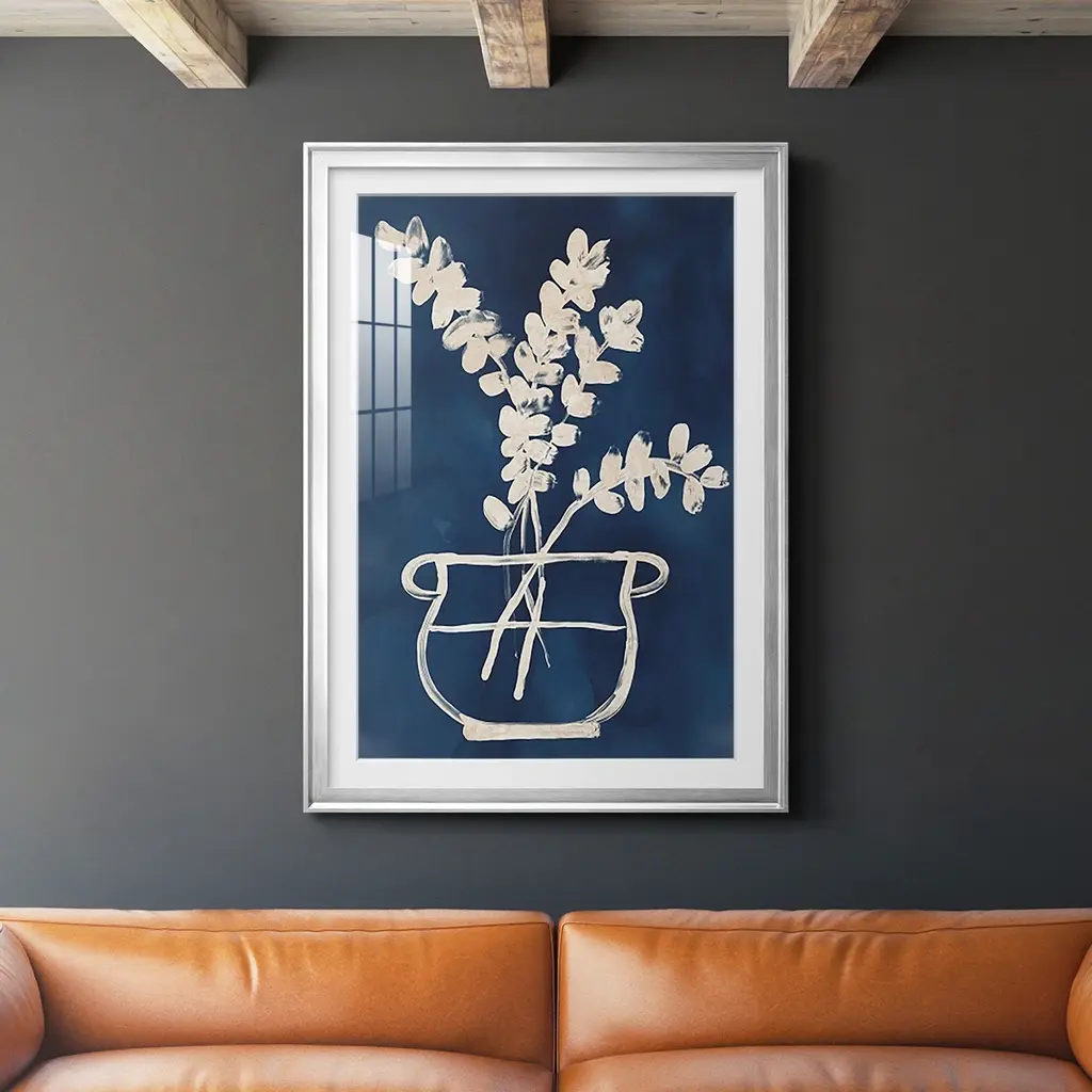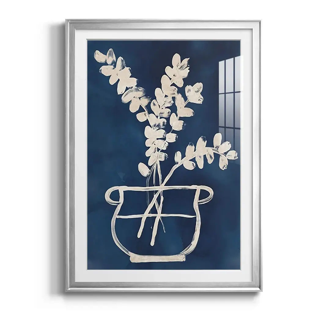 Vessel on Indigo II Premium Framed Print - Ready to Hang A Premium Framed Print created to last. Framed in distressed wood and available in an array of sizes and colors Featuring a beveled a solid wood stretcher bar, each piece comes ready to hand 4 SIZES AVAILABLE 30.5''X42.5'' - Overall Size 26.5'X36.5'' - Overall Size 22.5''x30.5'' - Overall Size 18.5''x24.5'' - Overall Size Each piece is made to order. Each piece comes with hanging hardware. Made in the USA Ready to Hang Giclee Paper Print Acrylic Glass Beveled Matt Board