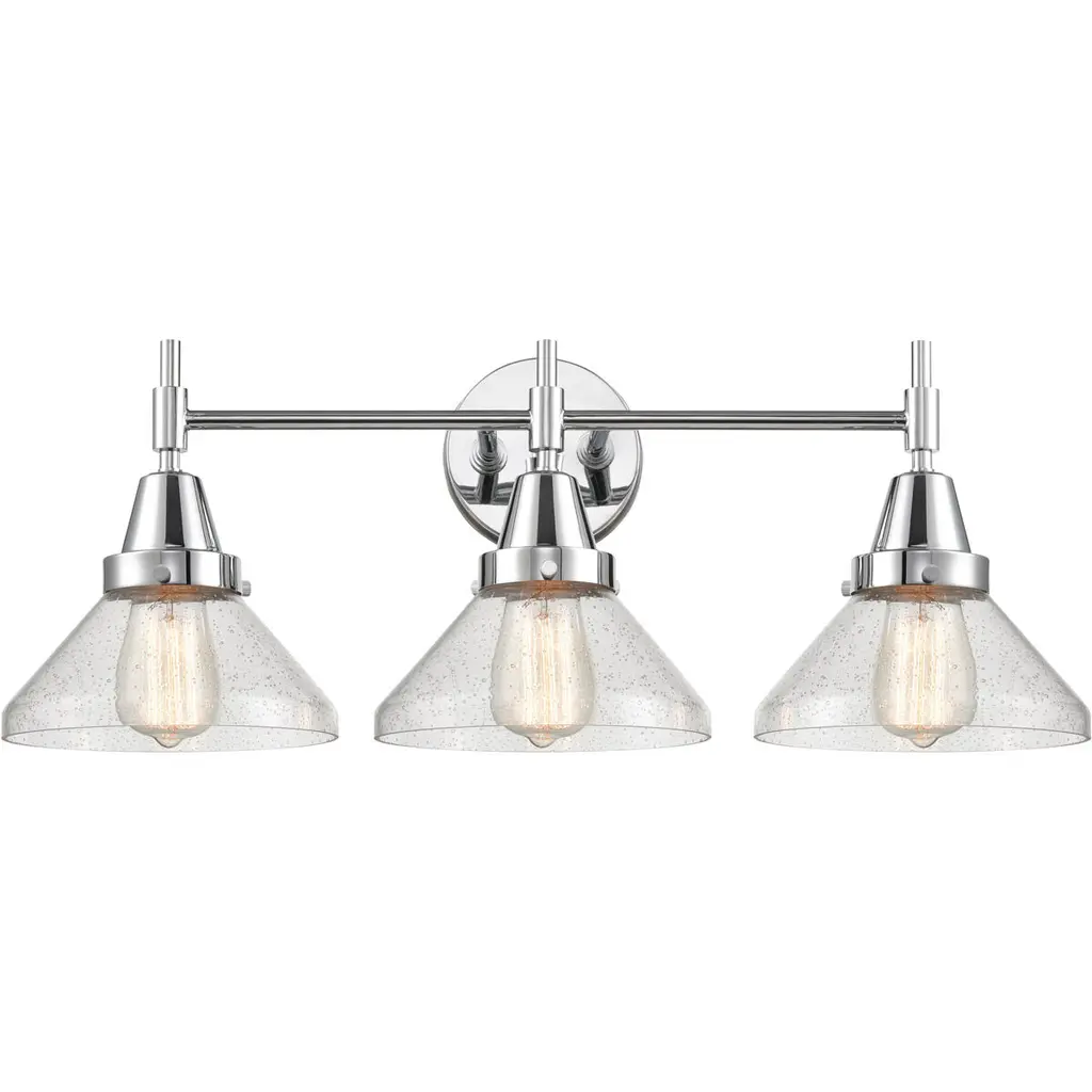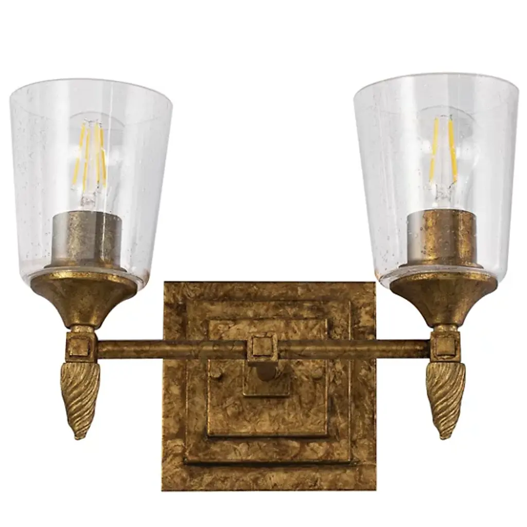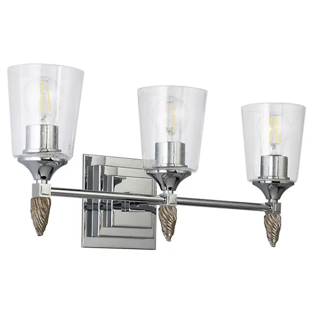 Lend a warm, vintage-style touch to inside walls with the inviting Vetiver Acorn Finial Vanity Light from Lucas McKearn. It’s a New Orleans-inspired piece, reminding one of classic Vetiver oil lamps. The nostalgic design comes forward with a stepped square mounting plate. Topping a slender crossbar, brilliant lamping rests inside flared shades of clear seeded glass. A textured, acorn-shaped finial descends from each socket below the crossbar, adding a touch of texture and memorable character to the smooth metal structure.