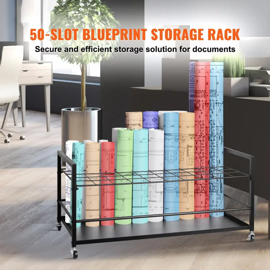 Vevor Blueprint Storage Rack,50 Slots Blueprint Holder With Wheels,mobile Metal Blueprint Storage Cart For Construction Plan Map Poster Architectural