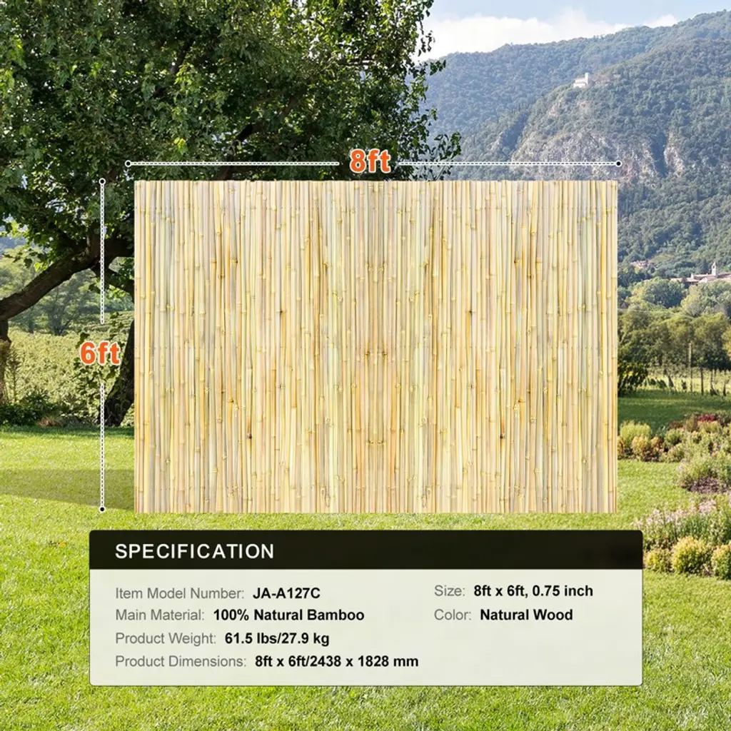 Vevor Natural Rolled Bamboo Fence, Eco-friendly Bamboo Privacy Fence 6 Ft H X 8 Ft L X 0.75 In D. , Decorative Bamboo Privacy Screen, Wood Color