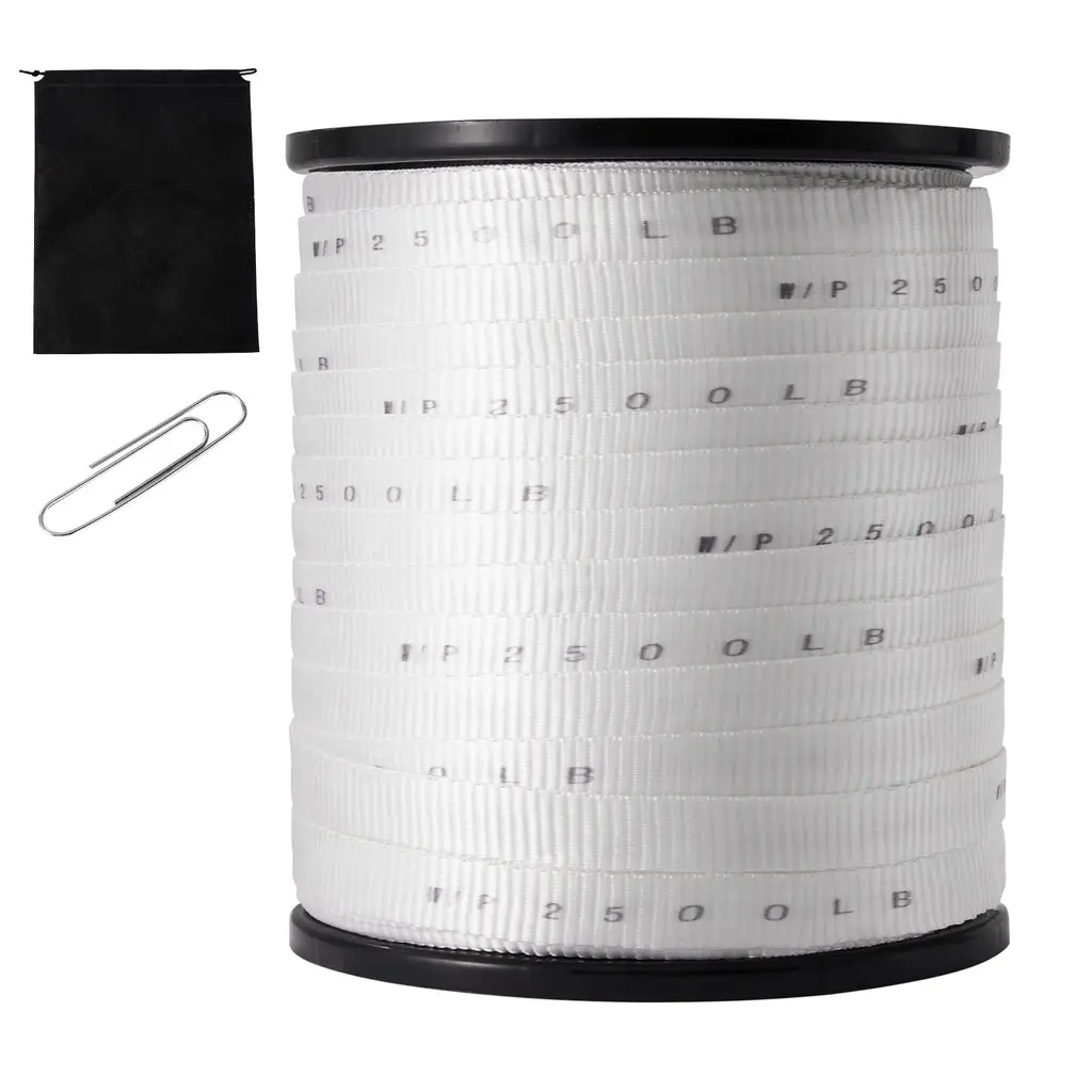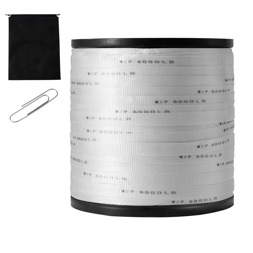 Feature: 2500 lbf Tensile Capacity: VEVOR polyester pull tape is made from high-quality 100% polyester material, giving you a whopping 2500 lbf of pulling power! It's perfect for tackling all sorts of tough jobs. Plus, it's labeled with clear strength markings (W/P 2500 LB) every inch for security and convenience. High-Performance Material: The pull tape is built tough with an industrial-grade polypropylene (PP) sleeve to keep it stable and strong even during high-speed pulls. And you won't have to worry about it losing shape over time. It's smooth and reliable, ready to meet all your wiring needs in a flash. 5% Extra-Long Spool: Get 5% more flat tape with our 1053 ft length! It's pre-lubricated to reduce friction, making it a breeze to use. And with its high strength and low stretch properties, it can handle tight spaces and hard-to-reach electrical conduits like a champ. It's built to last, so you can count on it for the long haul. Convenient Accessories: We've included a handy non-woven storage bag and a large paperclip-style fastener to keep your flat rope organized and ready to go. It is easy to store and retrieve unused or used tapes, ensuring neatness and convenience during use. Versatile Applications: Our polyester webbing isn't just for home DIY and professional wiring – it's a multitasking marvel! Use it for packaging, shipping, gear tightening, pulling goods, even hanging hammocks! With so many uses, it's sure to become your go-to tool for all kinds of projects. Package Content: 1 x Polyester Pull Tape 1 x Large Paper Clip 1 x Non-Woven Storage Bag