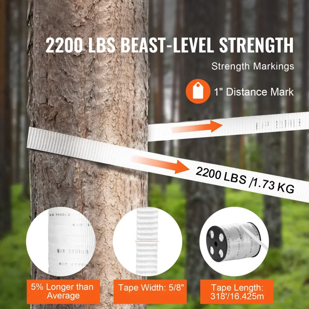 Vevor Polyester Pull Tape, 5/8" X 318' Mule Tape Flat Rope, 2200 Lbf Tensile Capacity, Printed Webbing Cable Pulling Tape