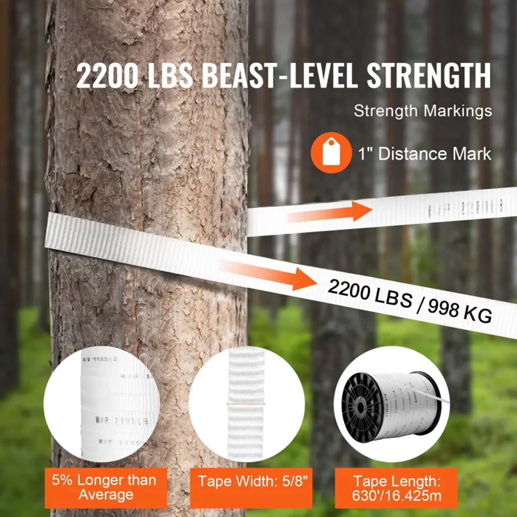 Vevor Polyester Pull Tape, 5/8" X 630' Mule Tape Flat Rope, 2200 Lbf Tensile Capacity, Printed Webbing Cable Pulling Tape