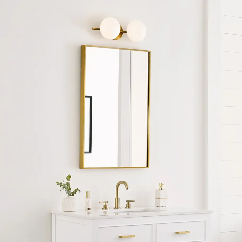 Say hello to illumination! This vanity light is perfect for your bathroom or hallway. Crafted from sturdy steel, it holds two lights within white shades that disperse an ambient glow. The bonus? It can be mounted either vertically or horizontally for flexibility. This light fixture requires T4-shaped bulbs (not included), but it's designed for damp environments, so don't worry about those hot showers. Plus, with its dimmable feature, you'll always have the perfect lighting for any mood.
