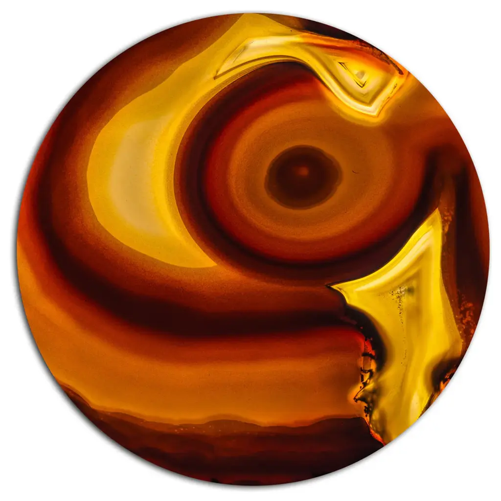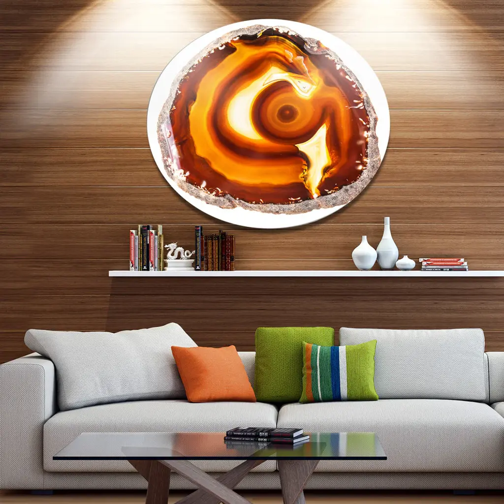 Bring Contemporary Abstraction to your home with this large Circle Metal wall art. This Vibrant Agate Geode Slice Metal Artwork makes it the focal point of any room or office. - White Gloss Coating ensures colors are extra vibrant with light reflection.- Aluminum grade Sheet Metal with 1 inch mounting frame on the back giving the illusion that the artwork is floating on the wall..- Mounting Brackets are included along with instructions.- High Quality Digital images are created directly into a glossy aluminum panel producing a stunning and captivating print into the glossy finish of the metal.- Water, Fire and Scratch resistant HD Aluminum panels.- Looks better than any photo paper and guaranteed to last at least 20 years- Easy to clean with a microfiber cloth. Colors are far superior to regular Canvas Art. - Easy to Hang