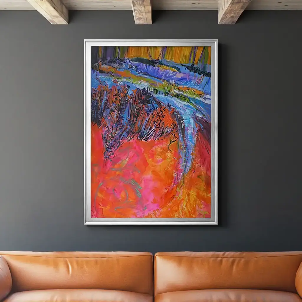 Vibrant Flow I Premium Framed Print - Ready to Hang A Premium Framed Print created to last. Framed in distressed wood and available in an array of sizes and colors Featuring a beveled a solid wood stretcher bar, each piece comes ready to hand 4 SIZES AVAILABLE 30.5''X42.5'' - Overall Size 26.5'X36.5'' - Overall Size 22.5''x30.5'' - Overall Size 18.5''x24.5'' - Overall Size Each piece is made to order. Each piece comes with hanging hardware. Made in the USA Ready to Hang