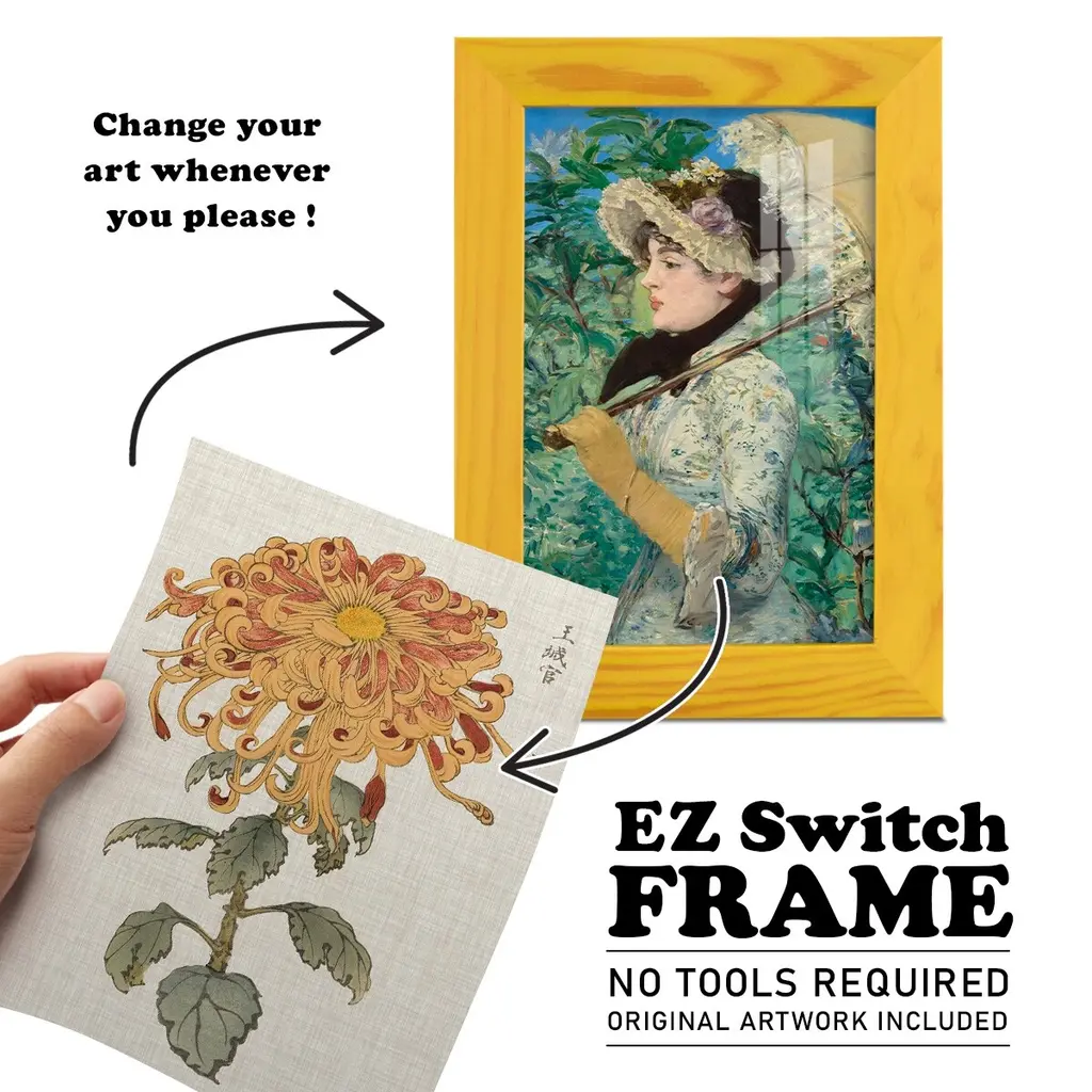 Vibrant Mums I -EZ SWITCH Framed Print w/glass-Cherry Red A delightful, framed print. Featuring a solid wood frame with real wood glass. This premium print is giclee quality. In addition, every frame features a removable back and table top stand. This allows you to change your art in the future or to just stand the art on a table for a new look. We are sure you'll enjoy our new series of EZ SWITCH Framed Art. Solid Wood Frame Real Glass Removable / Replaceable Art Built in Tabletop Stand Sizes range from 4x6 up to 12x15 - buy just one or pair them up as sets as you see fit.