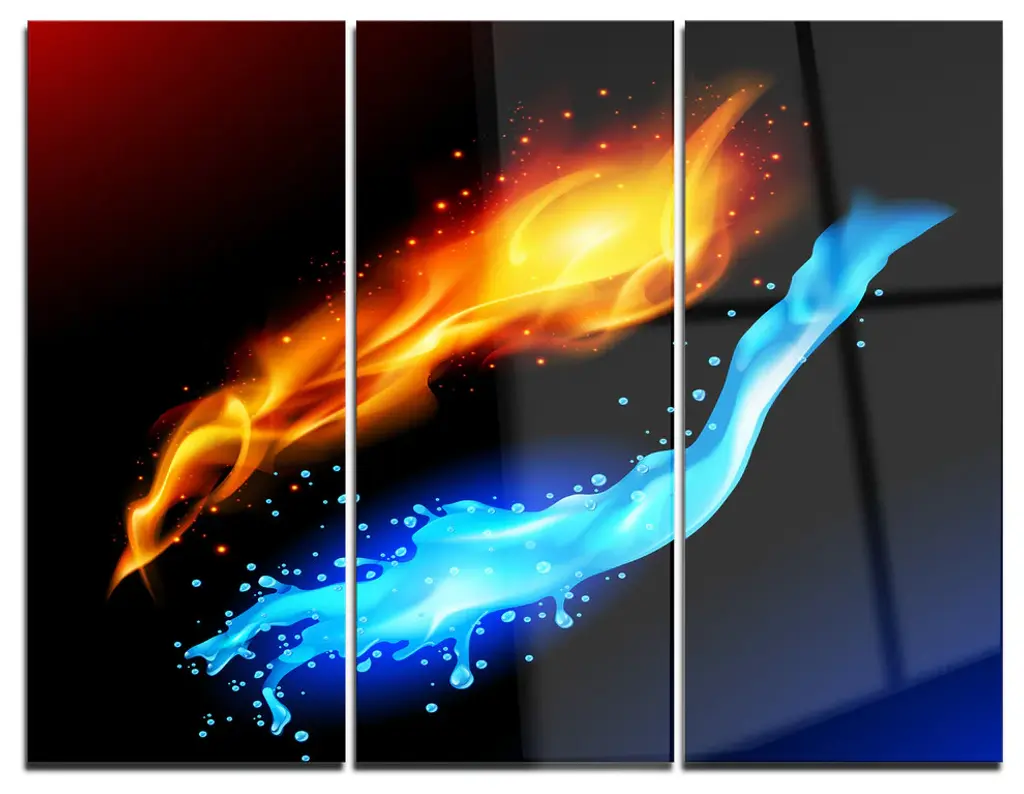 "Vibrant Yellow Red Waves" Digital Metal Wall Art, 3 Panels, 36"x28"