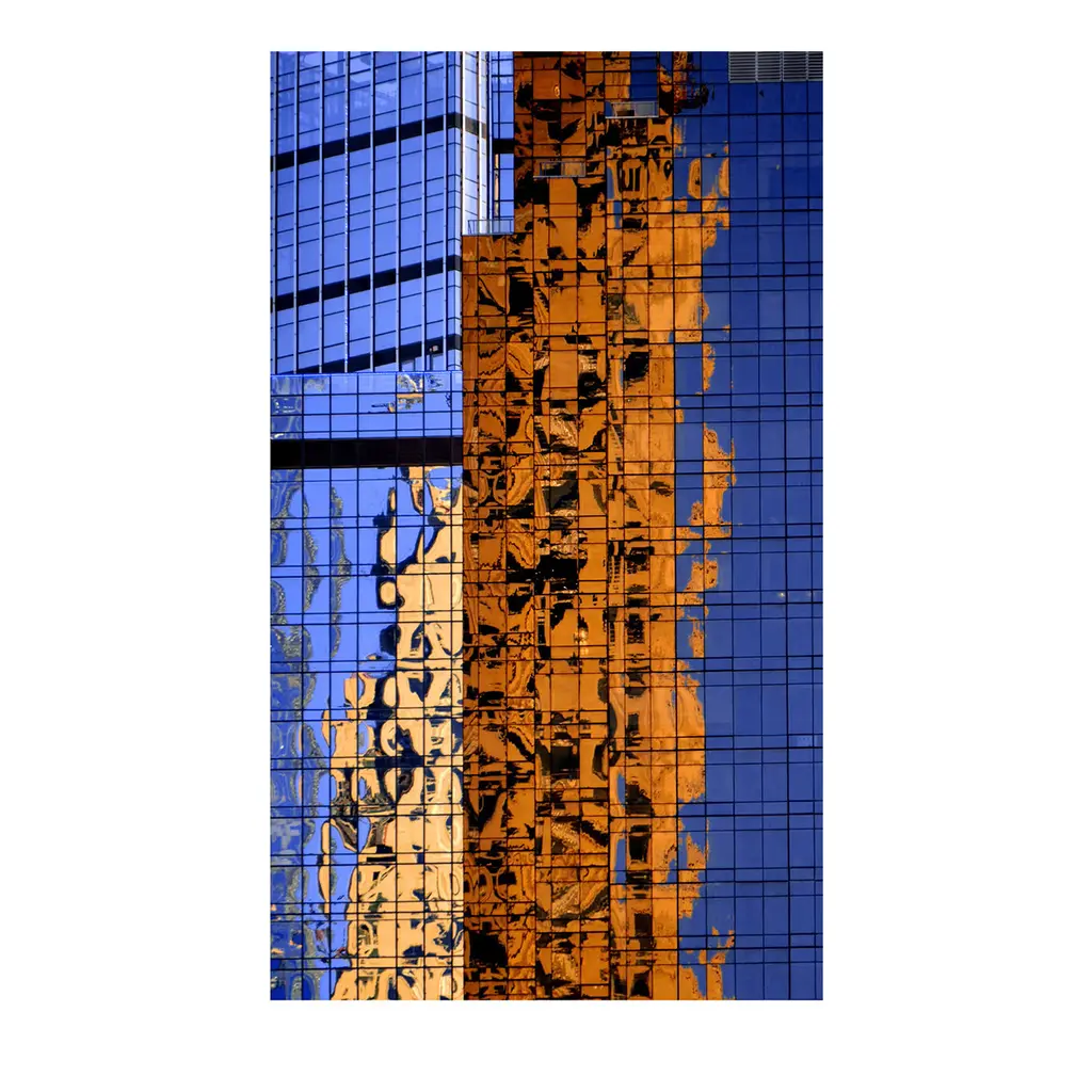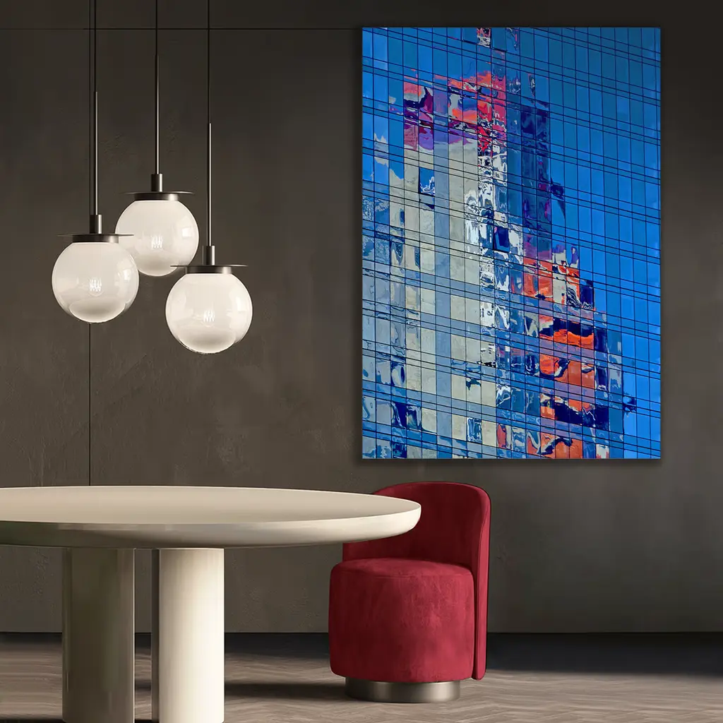 Fine Art Photography, Limited Edition of 3 copies, copy 2 of 3. Print on Plexiglass with dibond bottom. In the "Vibrations series", the artist researches abstract and surrealistic shapes produced by the windows of urban skyscrapers. As a result of a complex process of photographic choices and editing, the artist creates works of art in between photography and painting that are inspired by Surrealism and Futurism. Delivered with a certificate of authenticity, can be customized in format.