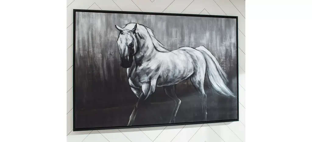 Rich with mood and mystique, this equestrian-theme framed Victor Equine Wall Art is unbridled beauty to behold. The fact that the gallery wrapped canvas is hand-painted makes each rendering a one-of-a-kind work of art. Large scale adds to its majestic nature.