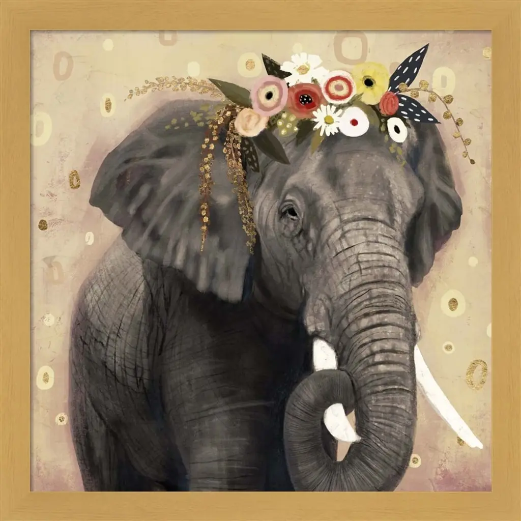 Klimt Elephant I by Victoria Barnes is a high quality piece of framed artwork. The finished size of this piece is 13.25" X 13.25". It has a Natural Deep Box frame and is finished with high quality glass. 100% Satisfaction Guaranteed.
