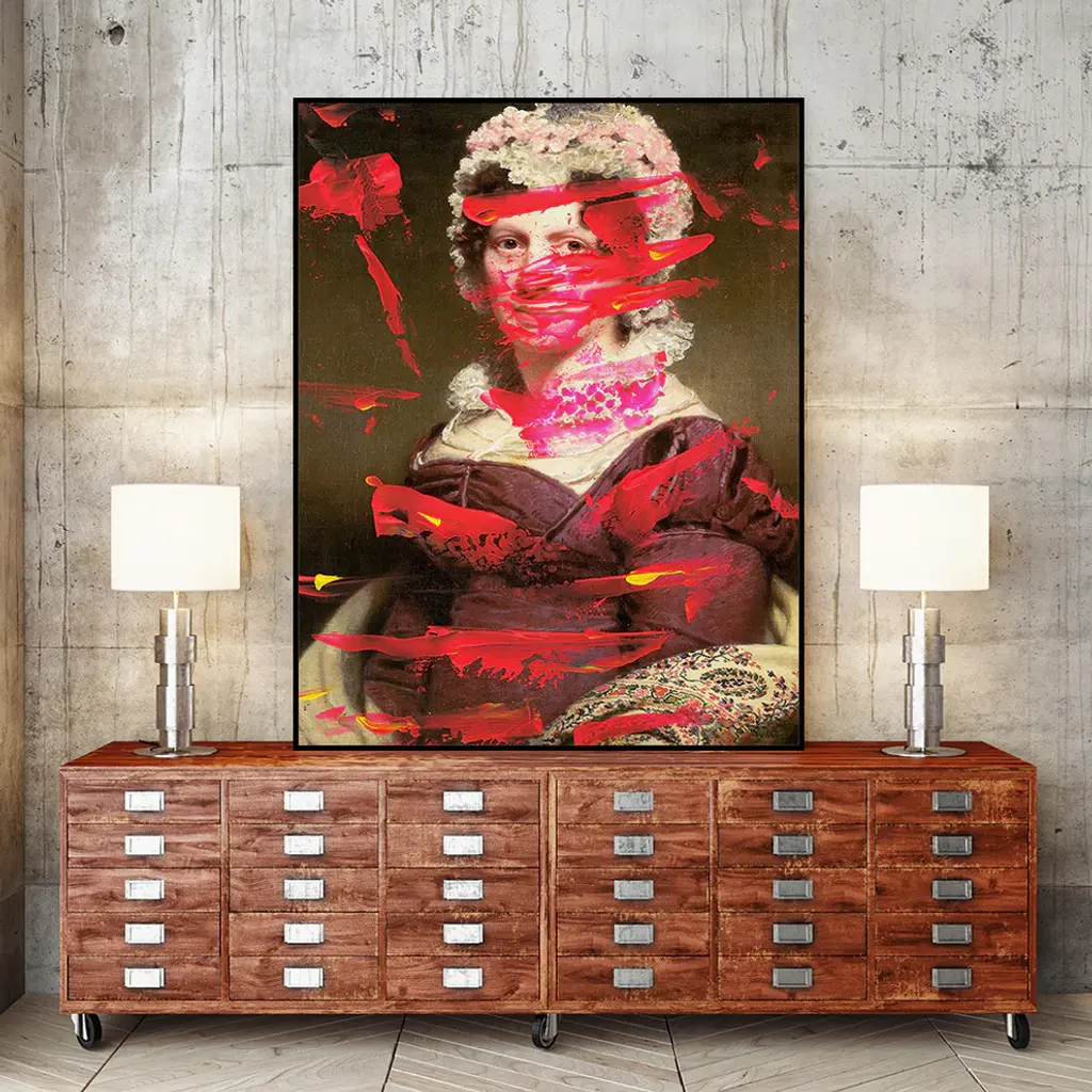 Your ready to hang artwork is printed on canvas then stretched and mounted to a 2-inch thick - hand stained black wood frame. Arrives at your door complete with an easy to use self-leveling hangking kit.