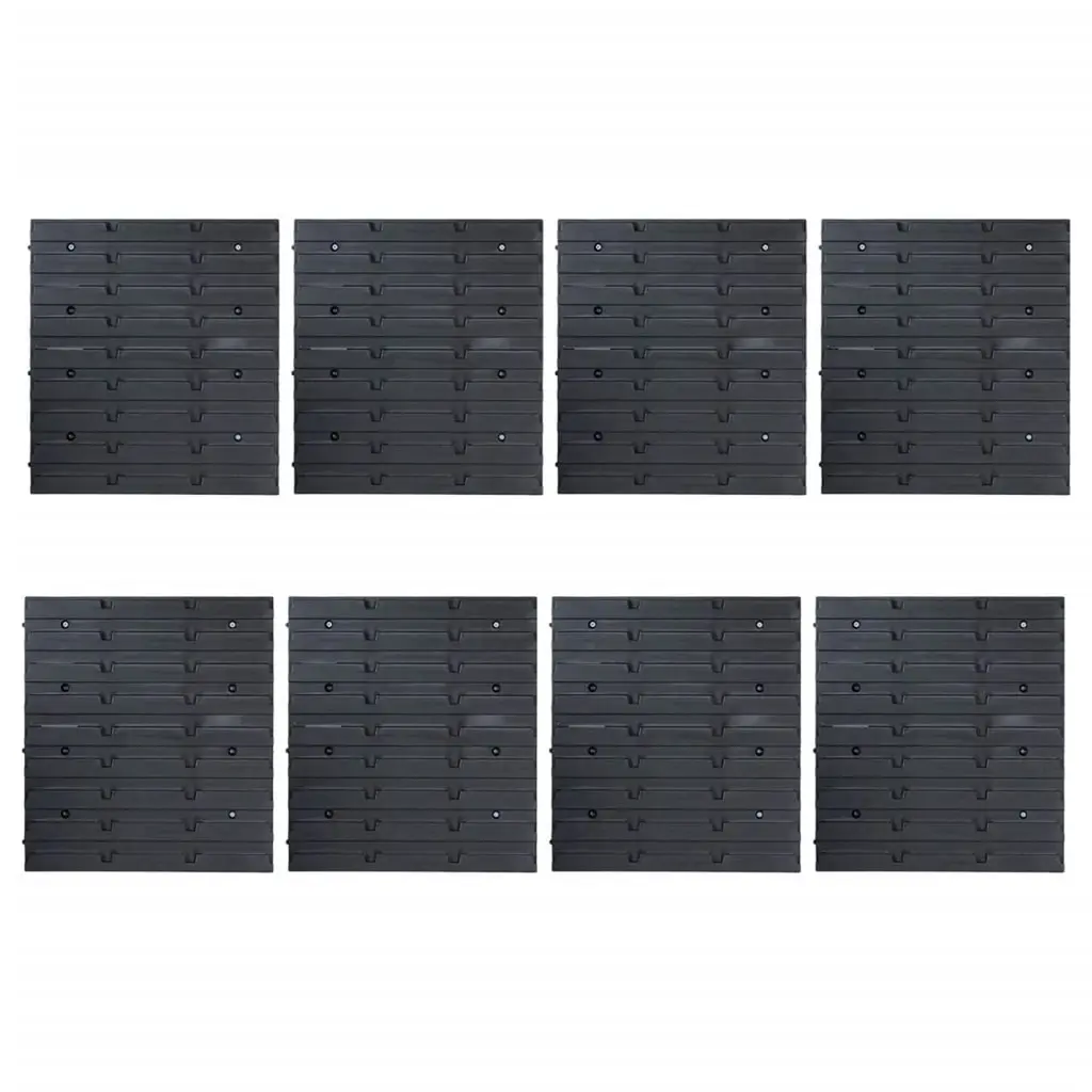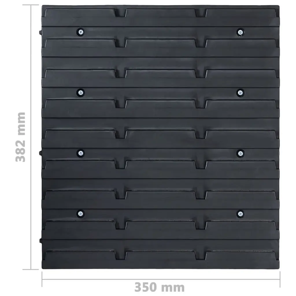 Keep your garage, craftroom and workshop organized, with this this storage bin kit with wall panels.The functional rack with stackable boxes offers many storage possibilities for small items such as screws, nails, nuts, sockets, fittings etc. The 8 solid wall panels hold various fixing accessories and 63 boxes, which can be labeled, for better overview of all small parts. You can take out the storage bins individually and stack them on top of each other. The rack set is expandable and easily mountable onto a garage or shack wall. This storage bin kit can be arranged to suit all your needs.