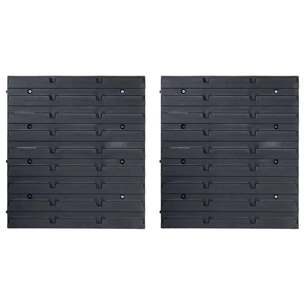 Keep your garage, craftroom and workshop organized, with this this storage bin kit with wall panels.The functional rack with stackable boxes offers many storage possibilities for small items such as screws, nails, nuts, sockets, fittings etc. The 2 solid wall panels hold various fixing accessories and 14 boxes, which can be labeled, for better overview of all small parts. You can take out the storage bins individually and stack them on top of each other. The rack set is expandable and easily mountable onto a garage or shack wall. This storage bin kit can be arranged to suit all your needs.