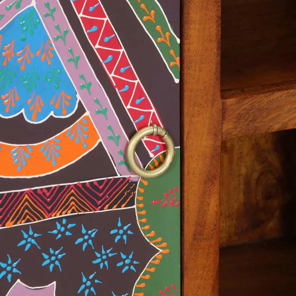 This sideboard is a stunning addition to any room, mixing style and function. The hand-painted design brings a vibrant splash of color, brightening up your space while serving practical storage needs. Storage Versatility: With five compartments, this sideboard is perfect for keeping your dining area organized. Each compartment is crafted from solid acacia wood, keeping your items safe yet easy to grab when needed. Elegant Aesthetic: With its hand-painted finish and decorative inlays, this sideboard isn’t just furniture; it’s an eye-catching art piece that enhances your decor. Sturdy Framework: Made from solid acacia wood, this sideboard is robust. The painted finish offers extra protection, making it suitable for indoor and outdoor use. Functional Dimensions: At 35.4 in long, 13.8 in wide, and 23.6 in tall, it fits nicely in tight spots, giving you surface area without overwhelming your room. Minimal Assembly Required: It comes with all the assembly bits you need. Just grab a buddy to help set it up, and you’re good to go.