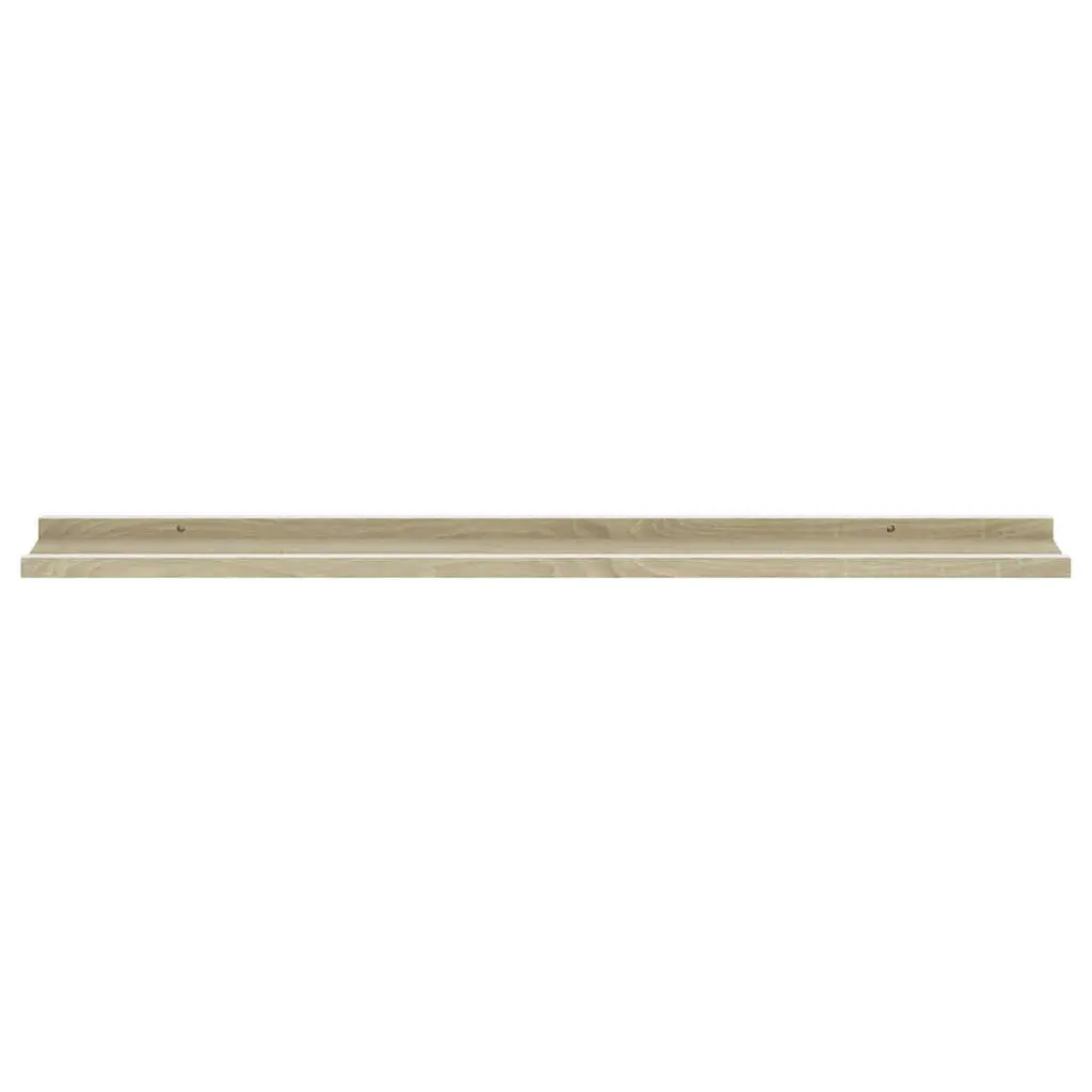 This duo of floating wall shelves is a fabulous mix of style and practicality, made to enhance your living room or bedroom decor. With a contemporary white and sonoma oak finish, they not only provide extra storage but also look great displaying your favorite decorative pieces, adding a nice visual touch to any space. Space-Saving Gem: These wall-mounted shelves are perfect for maximizing floor space in smaller areas while providing plenty of room for various items. Their sleek design gives the impression of more space, making them a smart addition to any compact home or apartment.High-Quality Build: Made from MDF, these shelves are built to last and can securely hold lightweight items. Their smooth feel and matte finish make them pleasant to look at and touch.Simple Installation: Each shelf comes with easy mounting instructions and is designed for a quick setup, so you can enhance your wall decor without any hassle, even if you're not a DIY expert.Versatile Use: Perfect for displaying books, photos, or decorative pieces, they add flexibility to any room. Their stylish appearance fits right in with all kinds of interior themes from modern to minimalist.Perfect Dimensions: At a pleasant size of 39.4 in long, 3.5 in wide, and 1.2 in high, they offer a solid display area without sticking out too much.