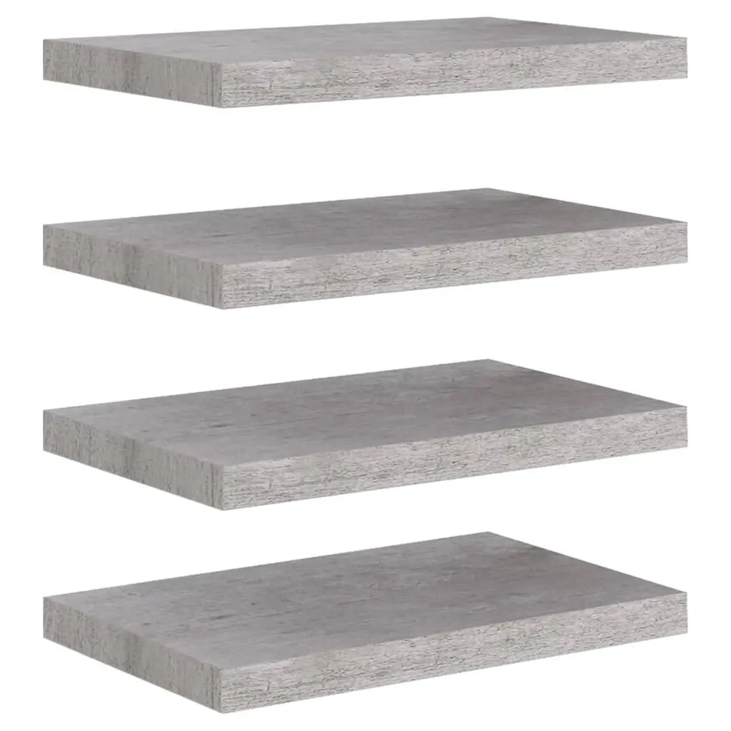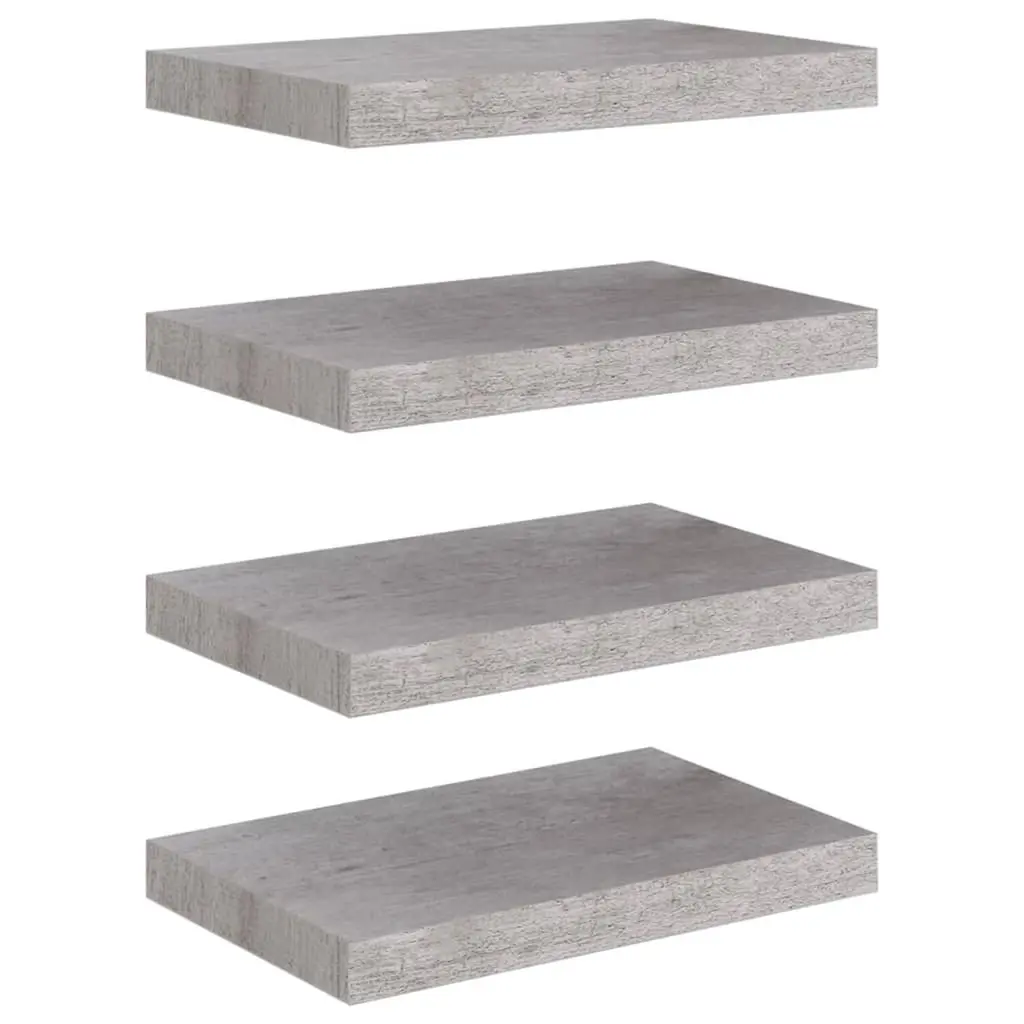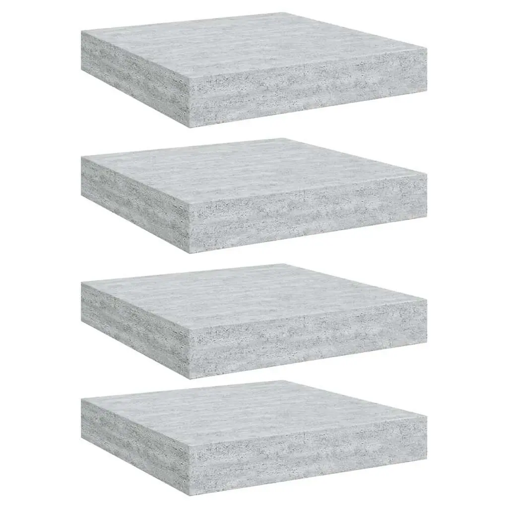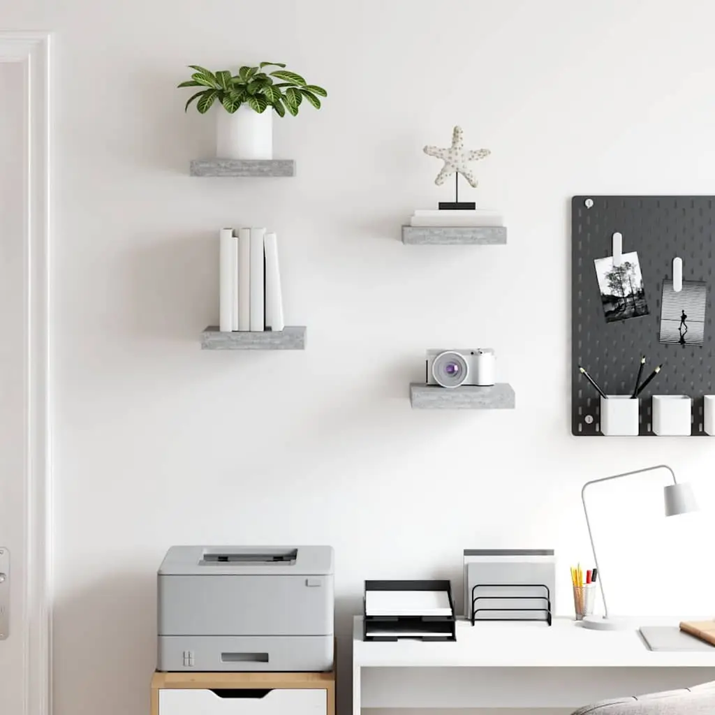This concrete grey floating wall shelf set has four square shelves, perfect for sprucing up any room while giving you some useful storage. Its sleek, minimalist vibe not only saves space but also lets you show off books and personal treasures in style. Made from sturdy MDF so it holds up well, making it a solid choice for your home decor.The matte finish gives it a refined, non-reflective surface that fits in with any modern style, enhancing your wall’s look.Floating design creates a sense of space, perfect for compact areas without skimping on storage.Super easy to put up with all the necessary tools included; you’ll achieve a polished look right away.Each shelf can hold up to 11 lbs, so it’s strong enough for showing off framed pictures, books, and art pieces.