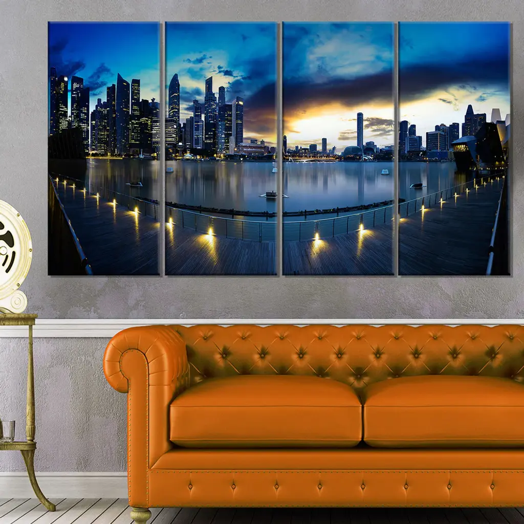 "View From Marina Bay Sands" Panorama Cityscape Canvas Print48"x28", 4-Panels