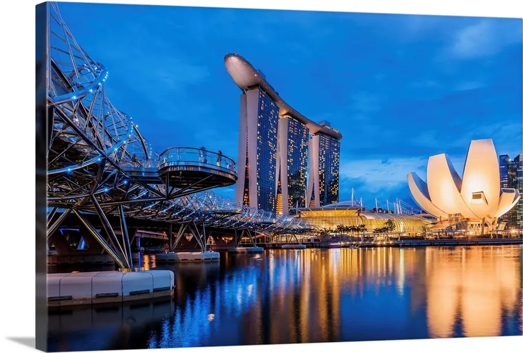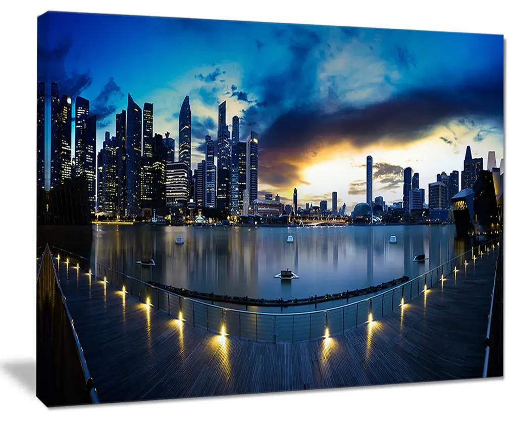 The View from Marina Bay Sands Panorama canvas art print is sure to make an impression on anyone who sees it. This artwork is gallery wrapped around a 1-inch solid wood frame and arrives carefully packaged and entirely ready to hang on the wall. Design Art only uses the highest resolution and pigments to ensure a crisp colorful print that is never faded or pixelated. This artwork is sure to be a conversation starter in any home or office.