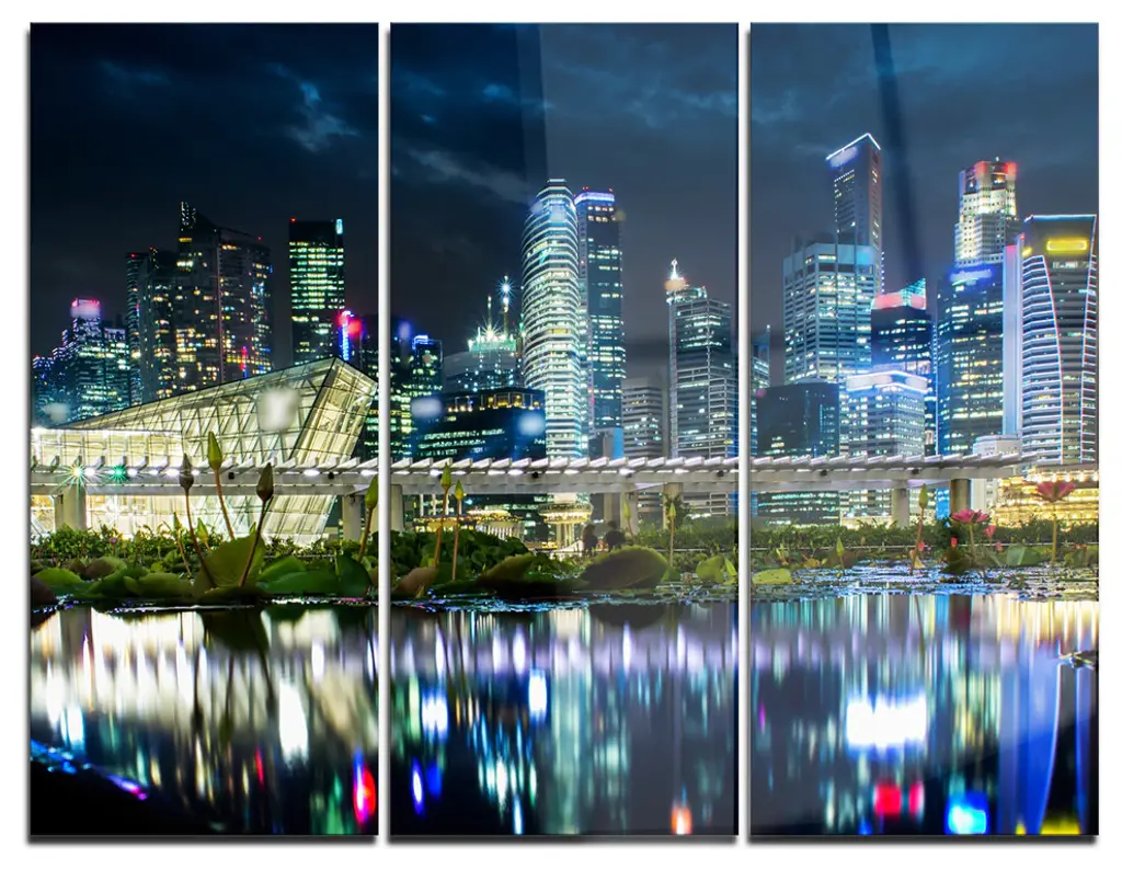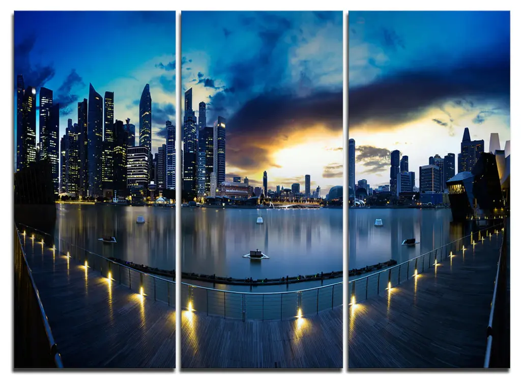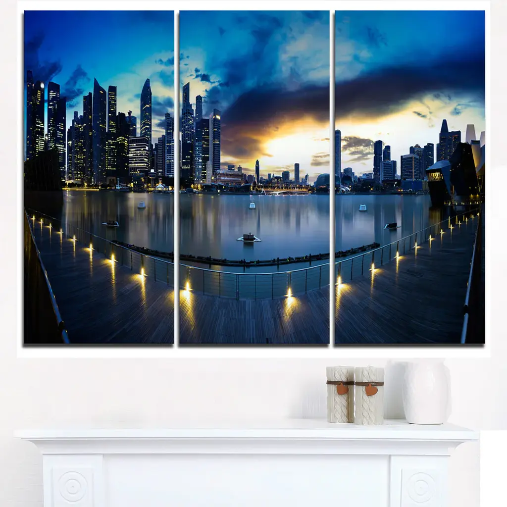 "View From Marina Bay Sands Panorama" Metal Wall Art, 3 Panels, 36"x28"