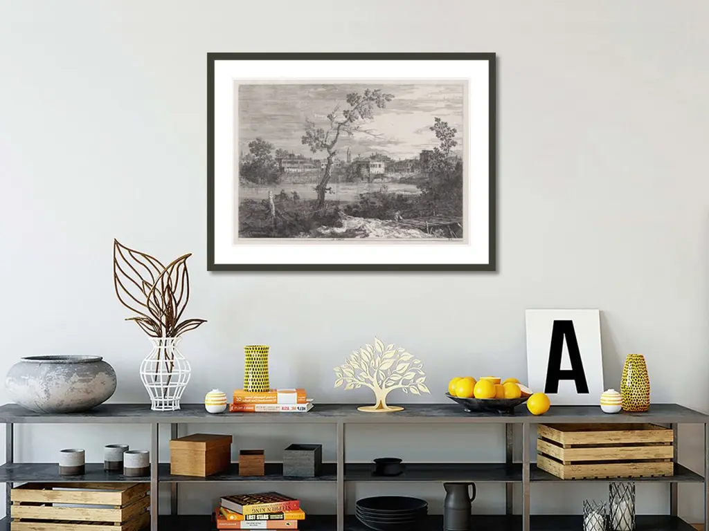 View Of A Town On A River Bank By Giovanni Antonio Canal Framed Print