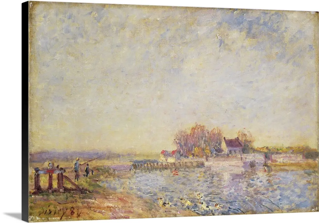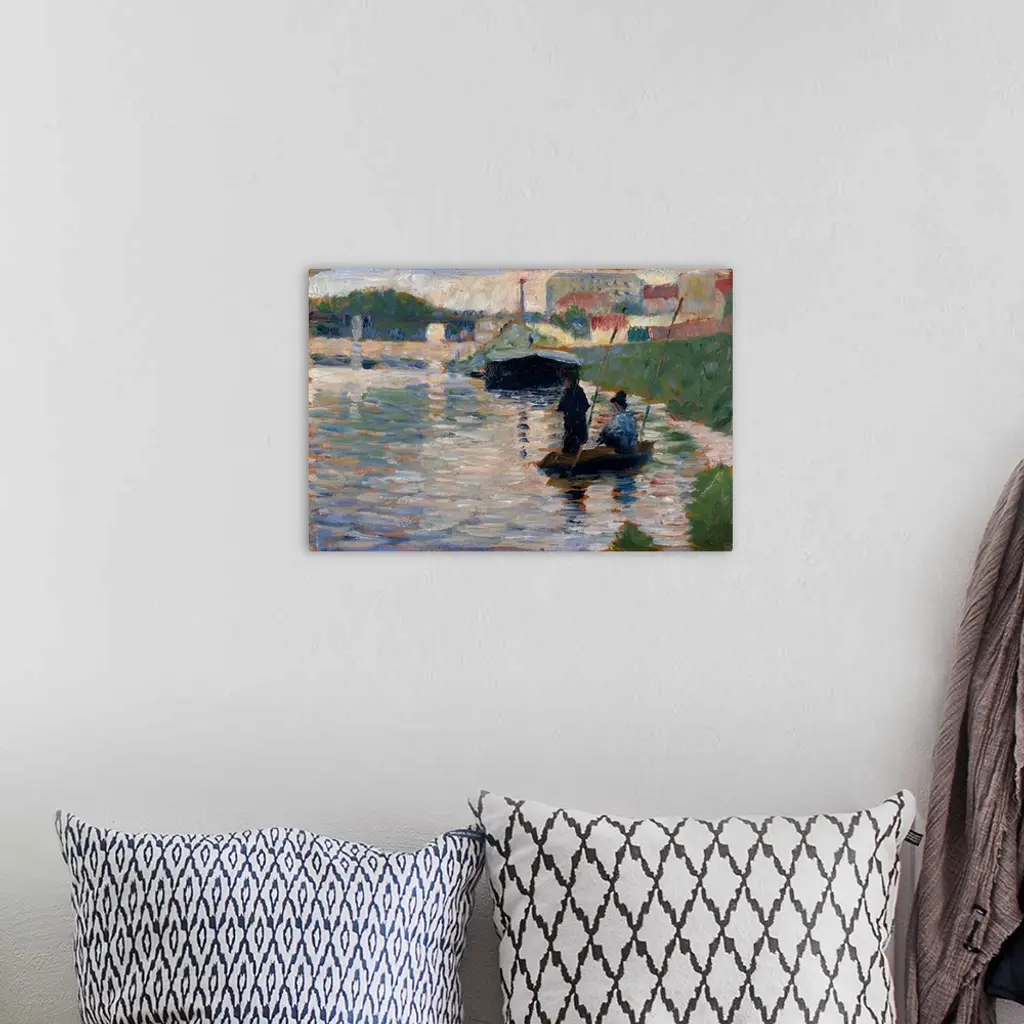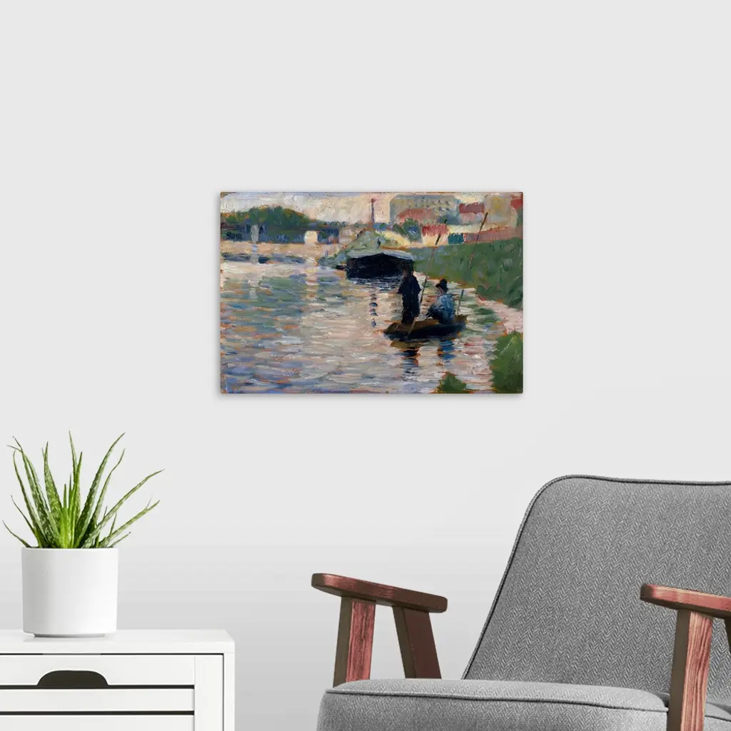 At the beginning of Seurat's career he made about seventy oil studies on small wood panels, which he called?croquetons?(little sketches). These durable boards were easily transported and held in the hand, making them ideal for painting outdoors. This is among the earliest of the studies that Seurat made along the Seine River on the outskirts of Paris, where fishermen, such as the duo in the foreground, cast their lines amid commercial barges and industrial smokestacks. Seurat's first major painting,?Bathers at Asnieres (1884; National Gallery, London) is set along a similar stretch of the river.�
