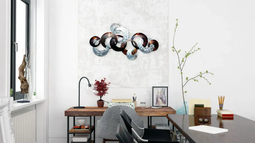 Make a bold, contemporary statement and add dimension to your walls with the Viggo Metal Wall Art.100% handcrafted rich metals with hand-finished treatmentsMultidimensional metal wall art in flamed steel, brass and copperDimensions: W 30" x D 3" x H 50" Materials: Metal