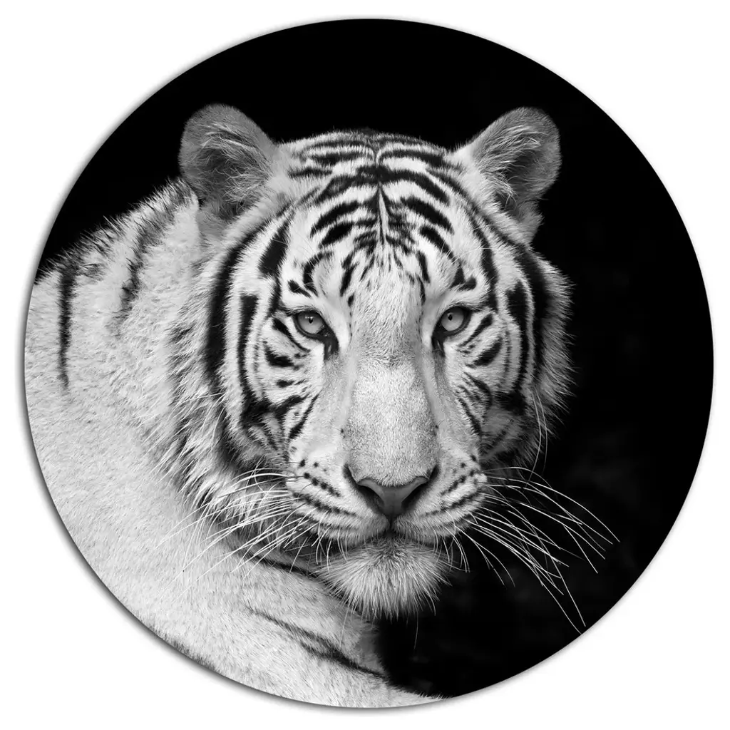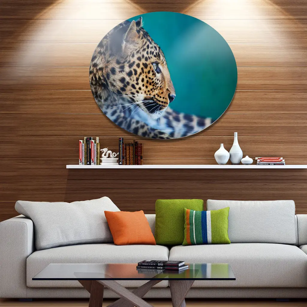 Bring Contemporary Abstraction to your home with this large Circle Metal wall art. This Vigilant Leopard Close-Up View Metal Artwork makes it the focal point of any room or office. - White Gloss Coating ensures colors are extra vibrant with light reflection.- Aluminum grade Sheet Metal with 1 inch mounting frame on the back giving the illusion that the artwork is floating on the wall..- Mounting Brackets are included along with instructions.- High Quality Digital images are created directly into a glossy aluminum panel producing a stunning and captivating print into the glossy finish of the metal.- Water, Fire and Scratch resistant HD Aluminum panels.- Looks better than any photo paper and guaranteed to last at least 20 years- Easy to clean with a microfiber cloth. Colors are far superior to regular Canvas Art. - Easy to Hang