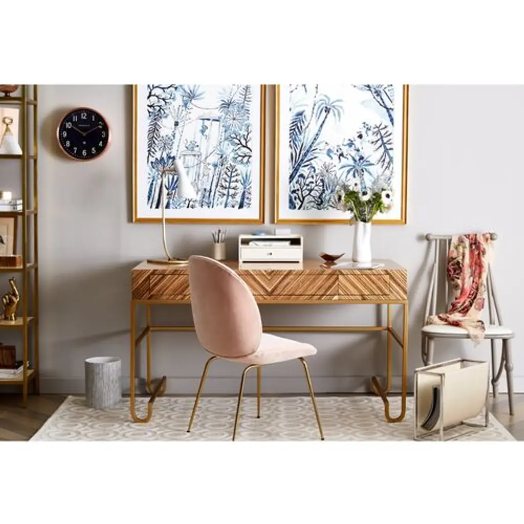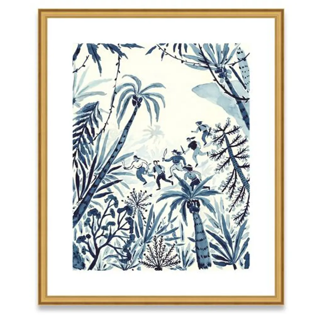 Seen first at One Kings Lane: This scene from Vikki Chu features a band of pirates navigating tropical terrain. Printed on watercolor paper, this piece is matted, framed, and arrives ready to hang.Vikki Chu is a Brooklyn-based illustrator with a BFA in Communication Arts from Virginia Commonwealth University. Known for her expressive use of color, her work often reflects an inspiration from people and architecture.