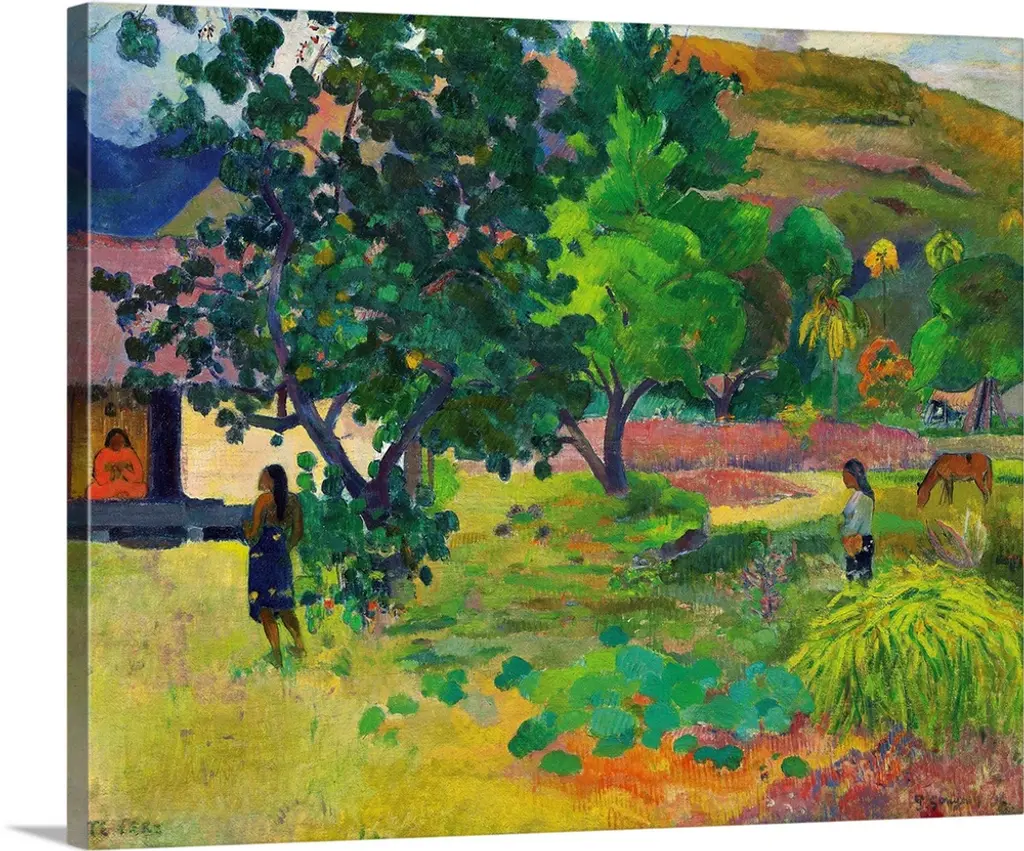 Village Farm Native Figures Classic Painting, 10"x15"
