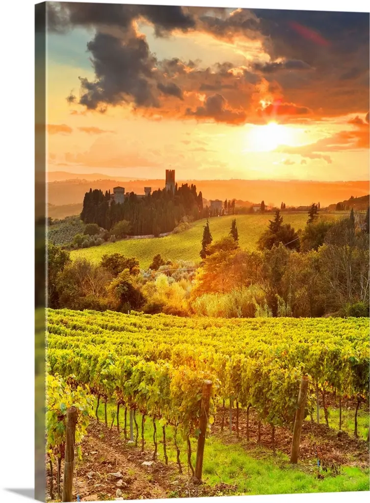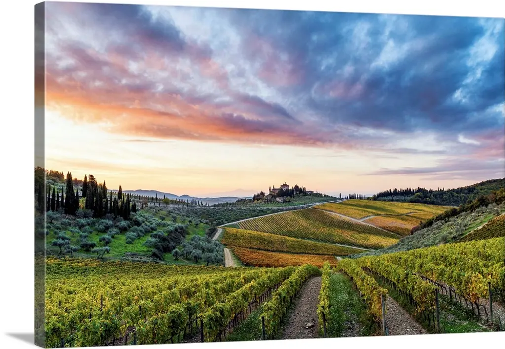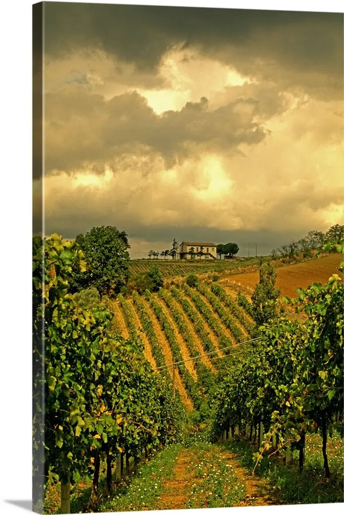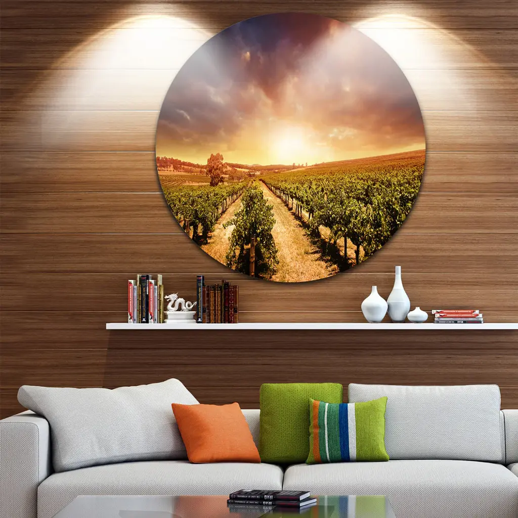 Vineyard With Stormy Sunset, Round Wall Art Landscape, 23"