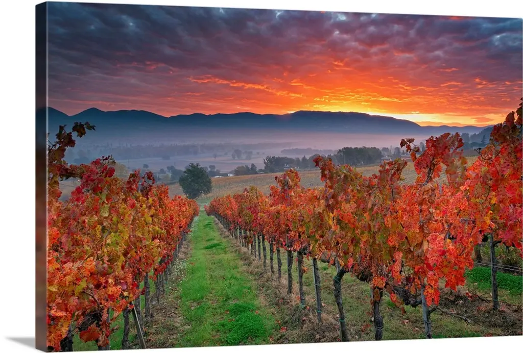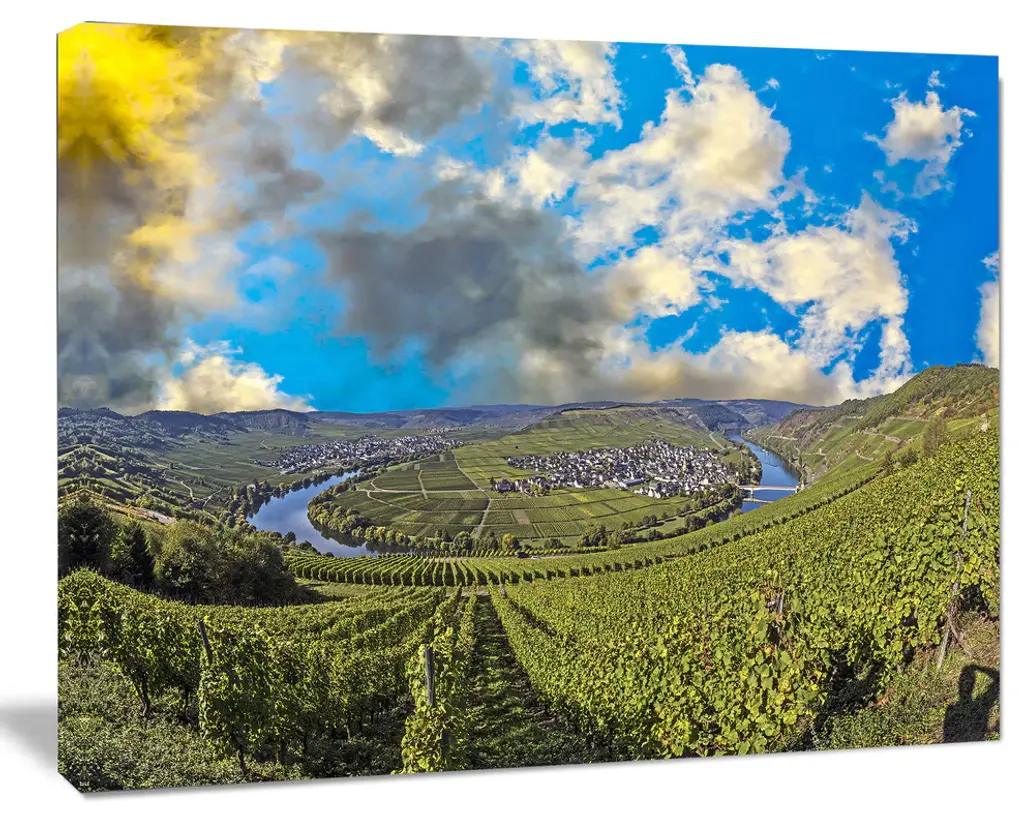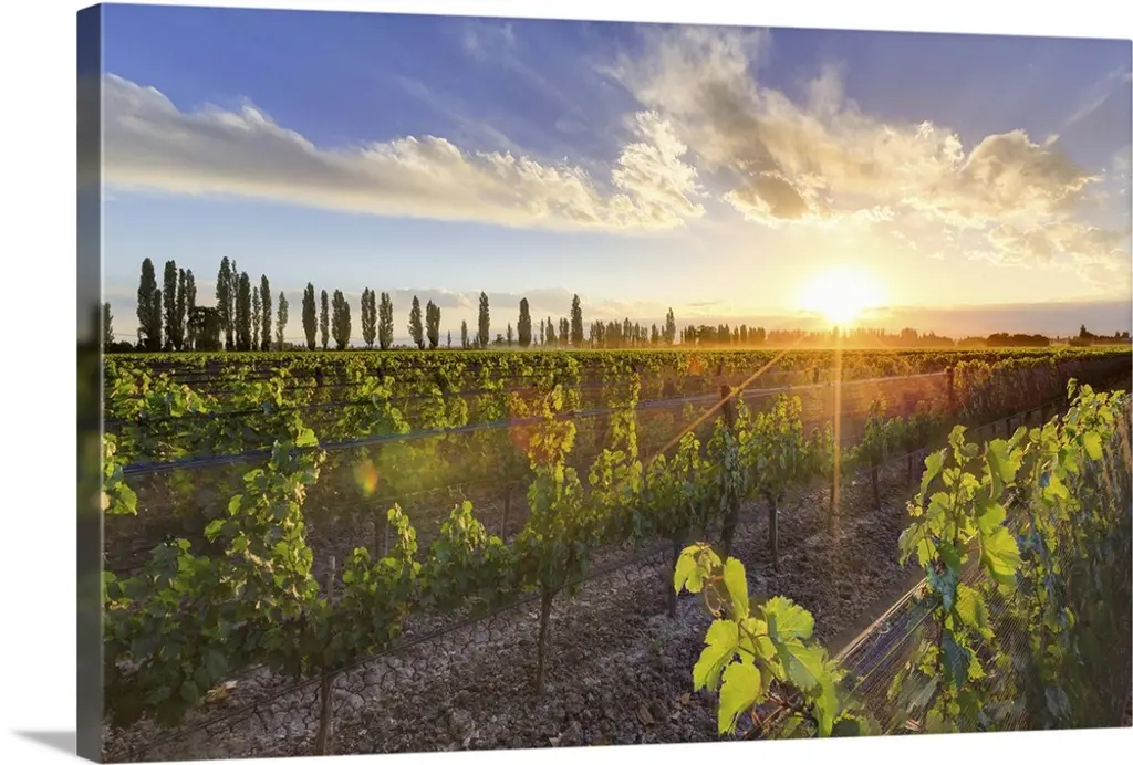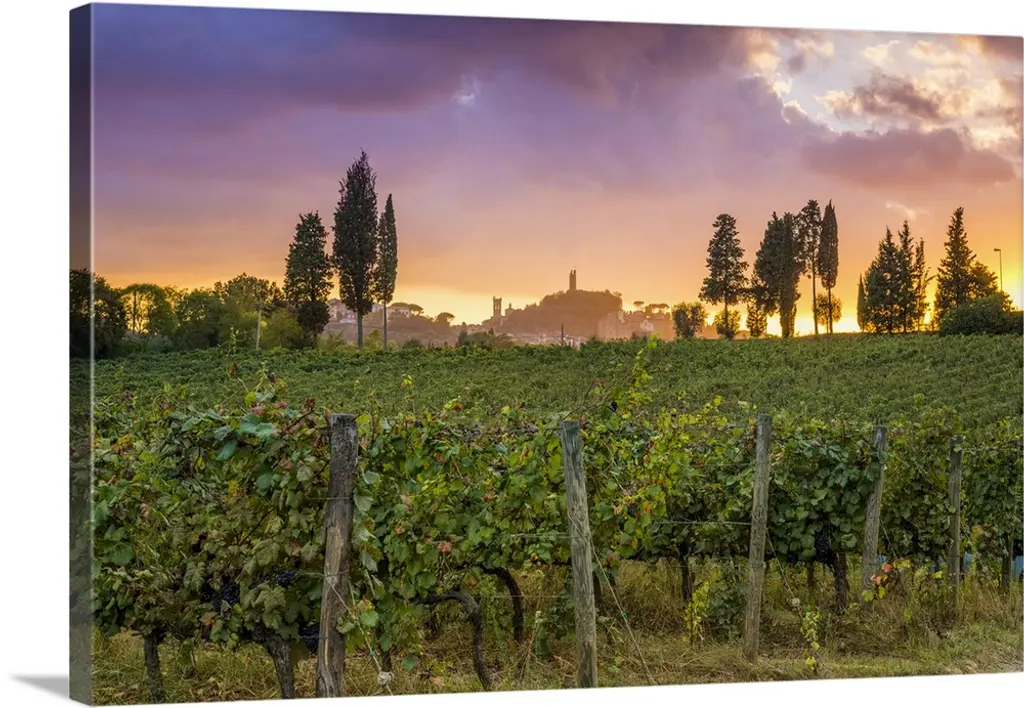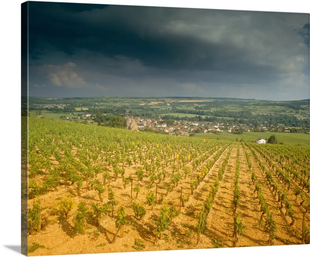 Vineyard With Stormy Sunset, Round Wall Art Landscape, 23"
