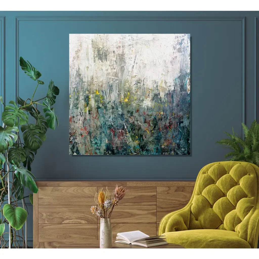 VINTAGE ABSTRACT is a Contemporary fine art reproduction on canvas of an original hand-painted painting by living American artist John Beard. This piece is made to order in John’s St. Augustine, FL studio, by John and staff just for you. This piece is also available in different dimensions and can be hung Vertically or Horizontally. For years John lived abroad – working tirelessly to help the world become a better place. Feeding the hungry, providing medical attention, warm clothes and an inspirational message to children in over 35 nations. His past and present catalyze on canvas to create something much more than an image handing on a wall. For those who discover him, artist John Beard is a rare find, like the paintings he creates. “Each work takes on a life of its own, breathing life into the constant shapes, colors and ideas flowing through my mind; expressing something words cannot.†– John Beard